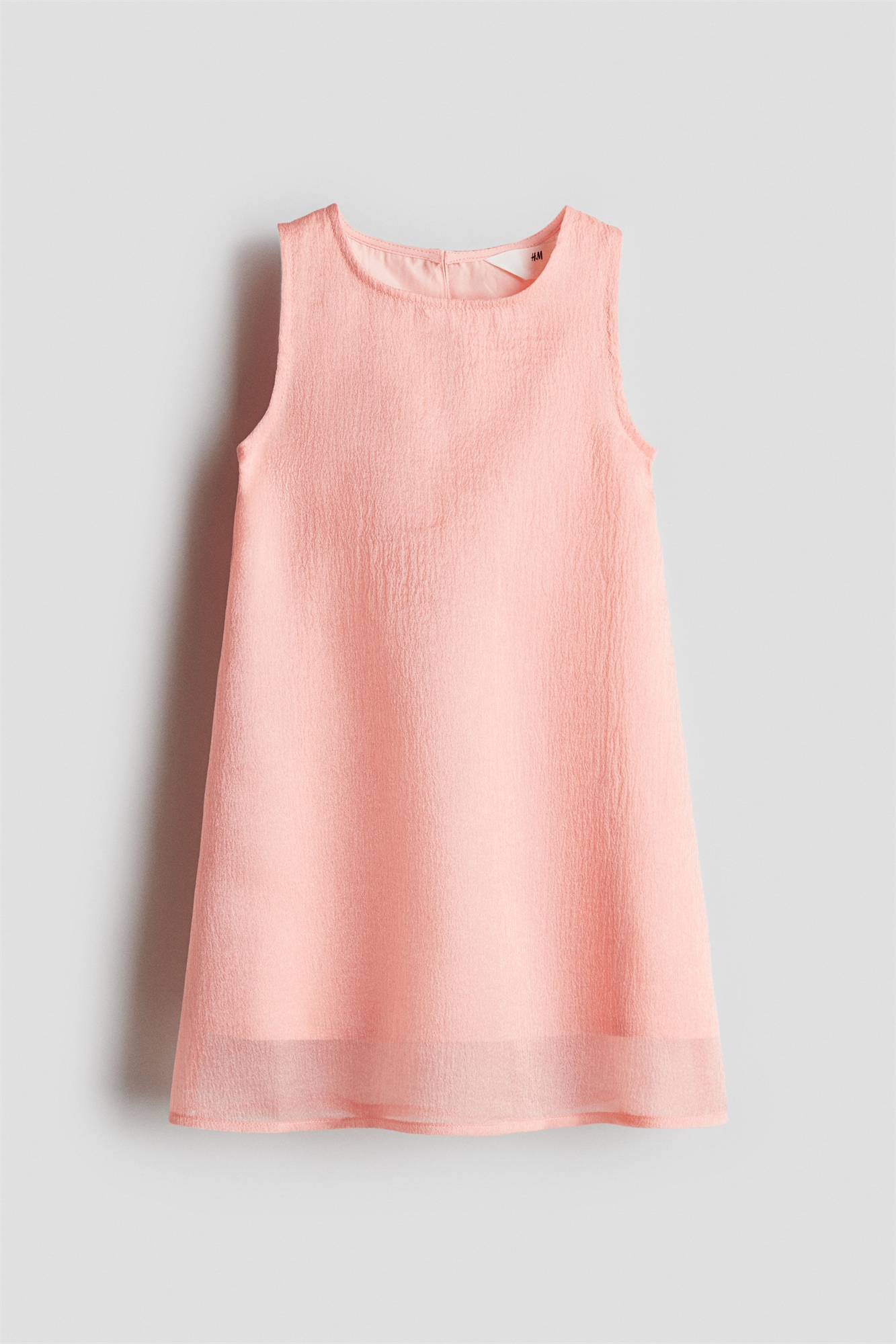 Платье А-линии без рукавов из ткани с переплетением нитей, с круглым вырезом и прорезью для ключа с пуговицей сзади. На подкладке.