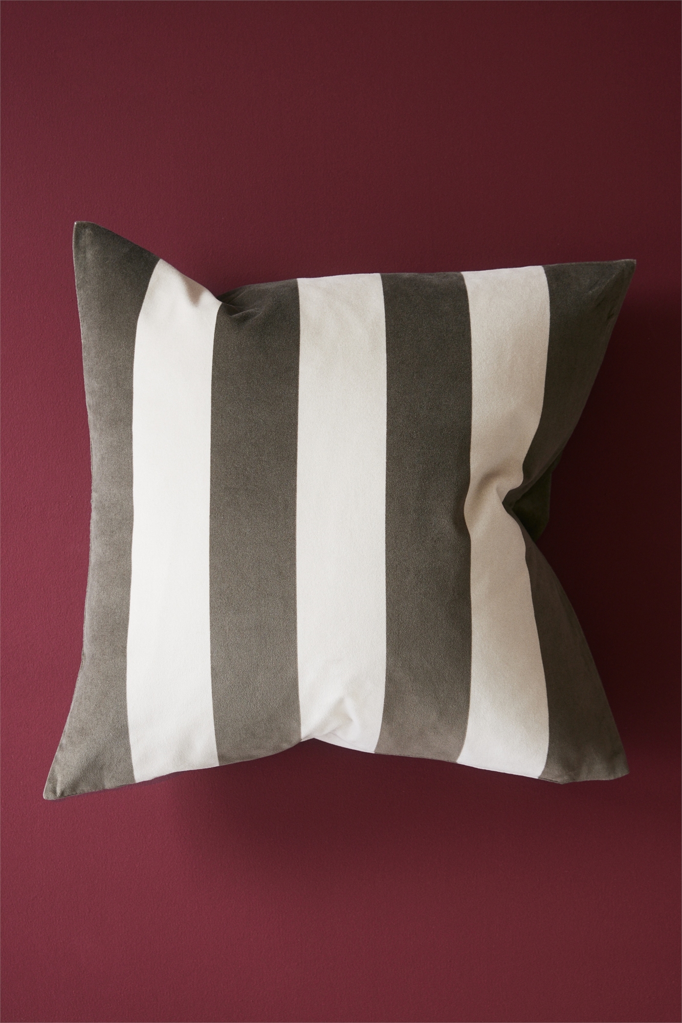 Бархатный чехол для подушки в полоску на молнии с одной стороны.