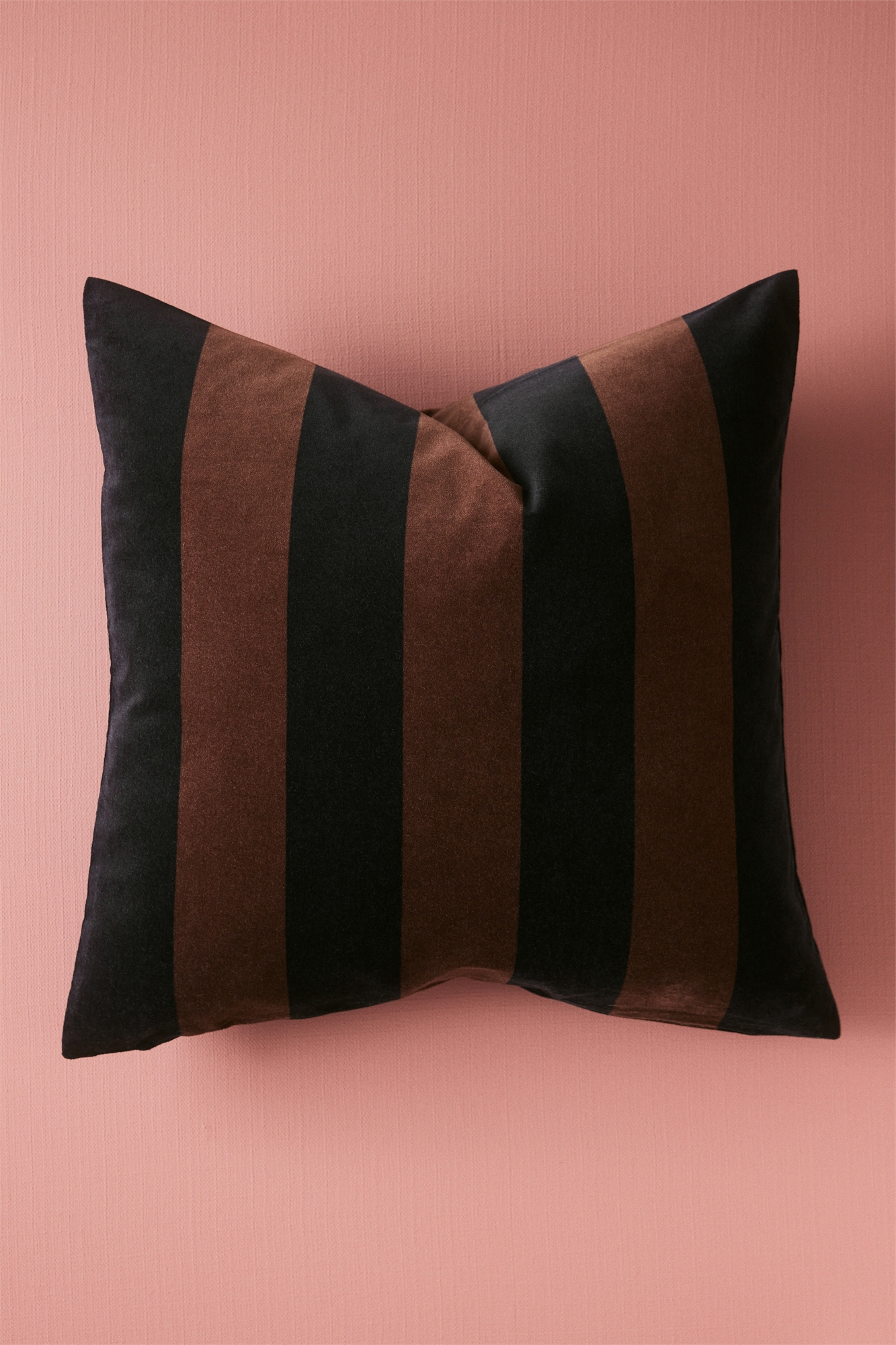Бархатный чехол для подушки в полоску на молнии с одной стороны.