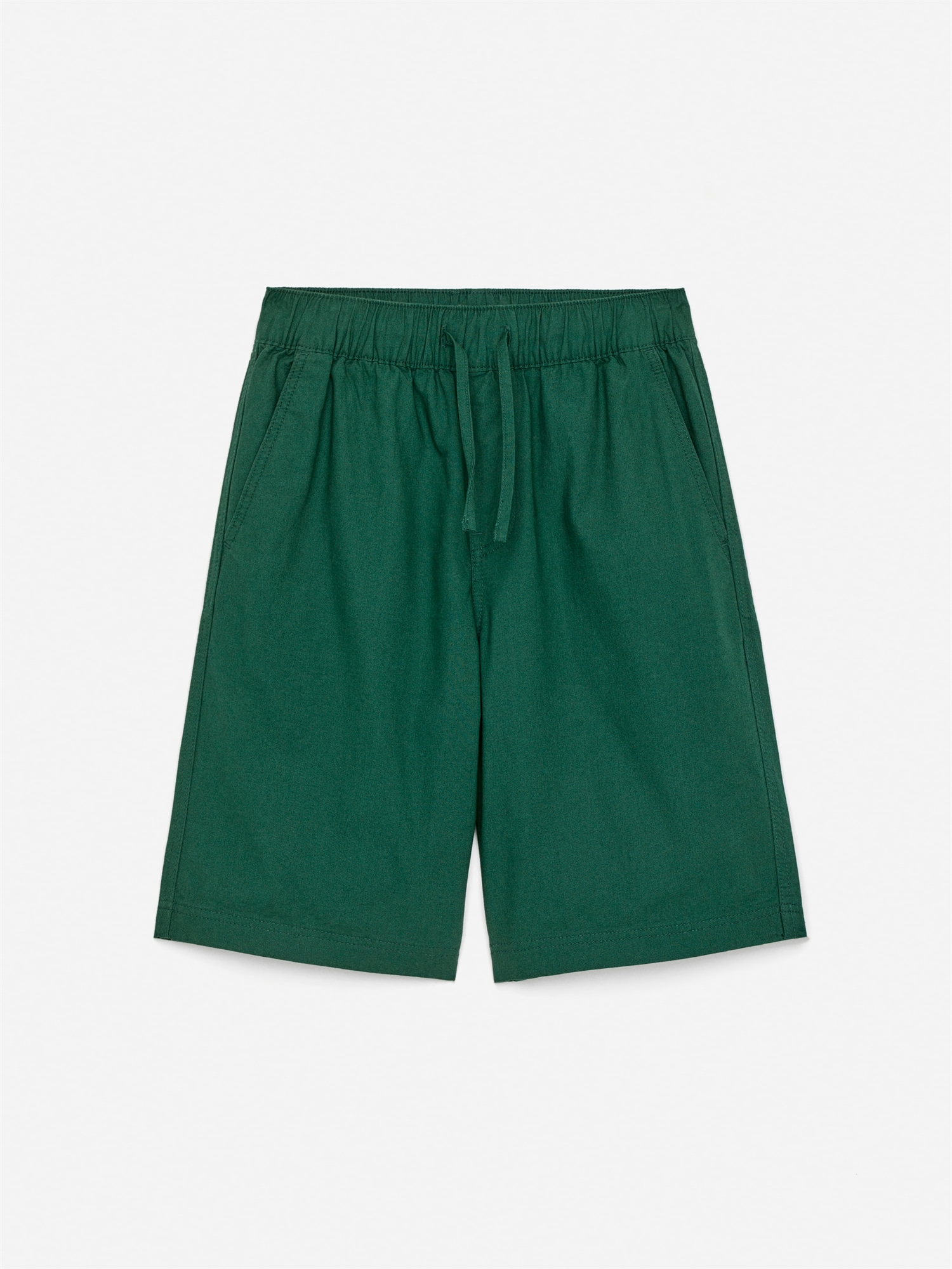 Шорты длиной до колена из хлопка, с эластичным поясом с завязкой, боковыми карманами и одним задним карманом. Расслабленный крой.