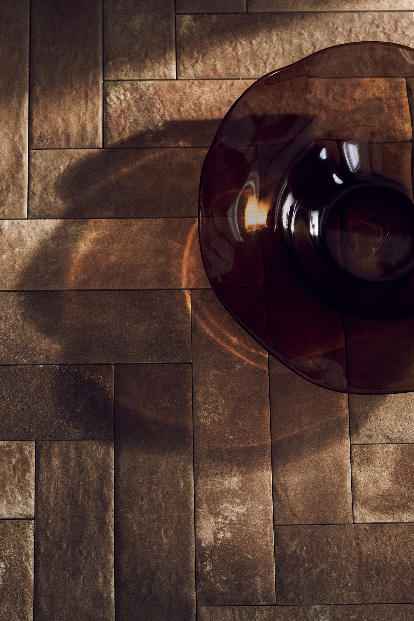 Низкая чаша из стекла с мягким волнистым рисунком. Каждый предмет уникален как по цвету, так и по форме.