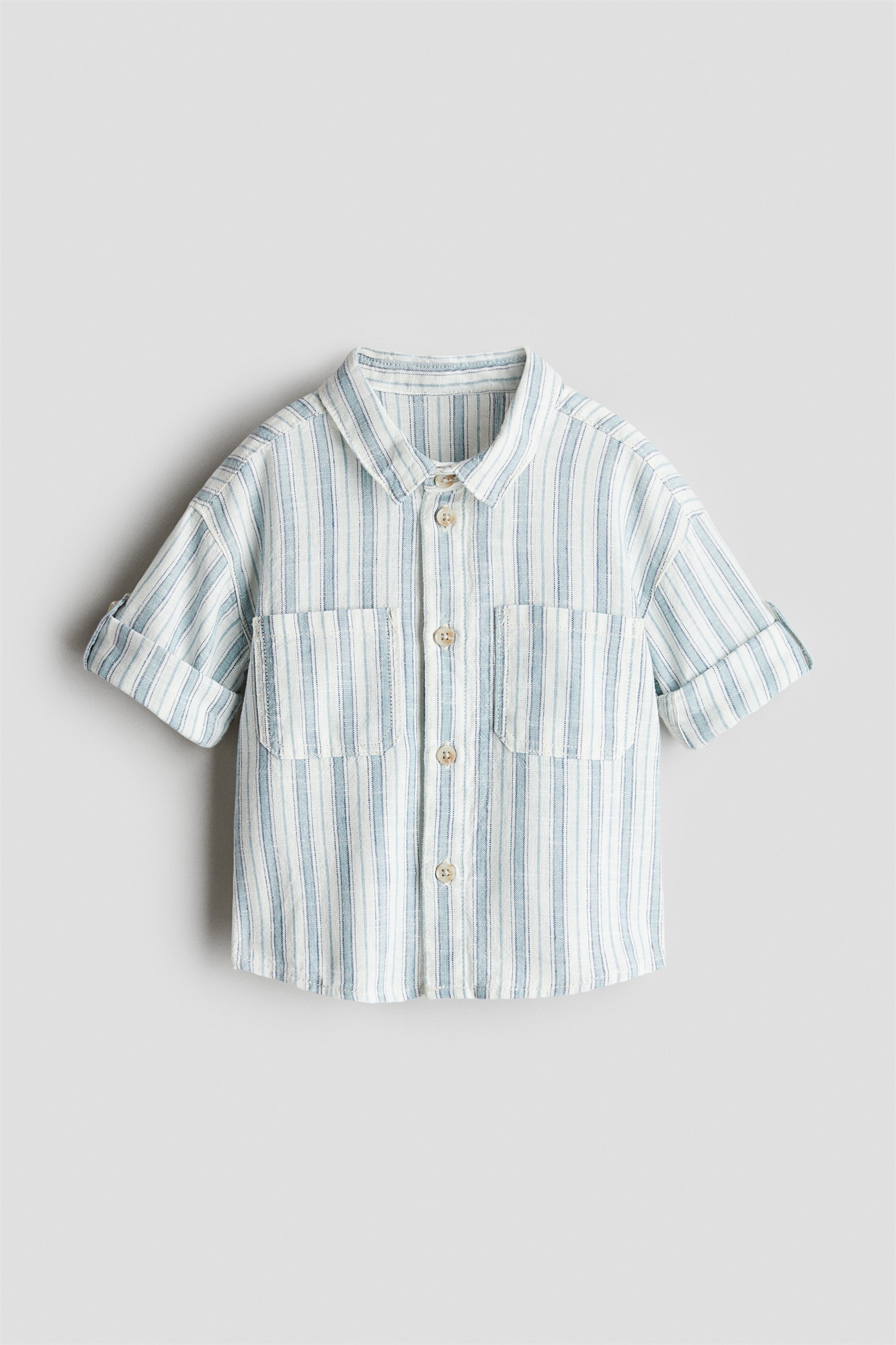 Рубашка с мягким, воздушным плетением из смеси хлопка и льна. Отложной воротник, пуговицы спереди и открытые нагрудные карманы. Спущенные плечи и длинные рукава с застежкой на пуговицы и манжеты на пуговицах.