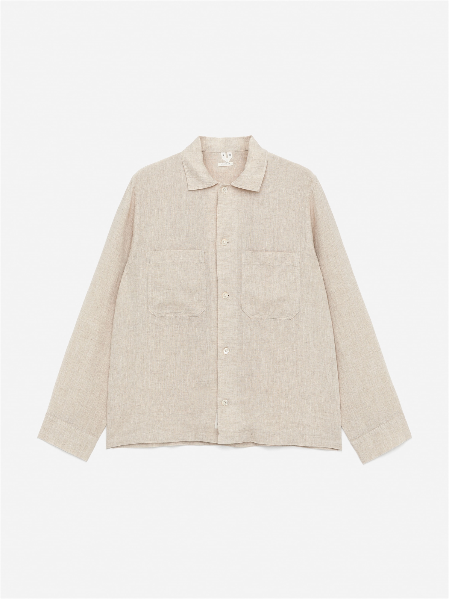 Льняная рубашка с длинными рукавами, нагрудными карманами и свободным кроем.