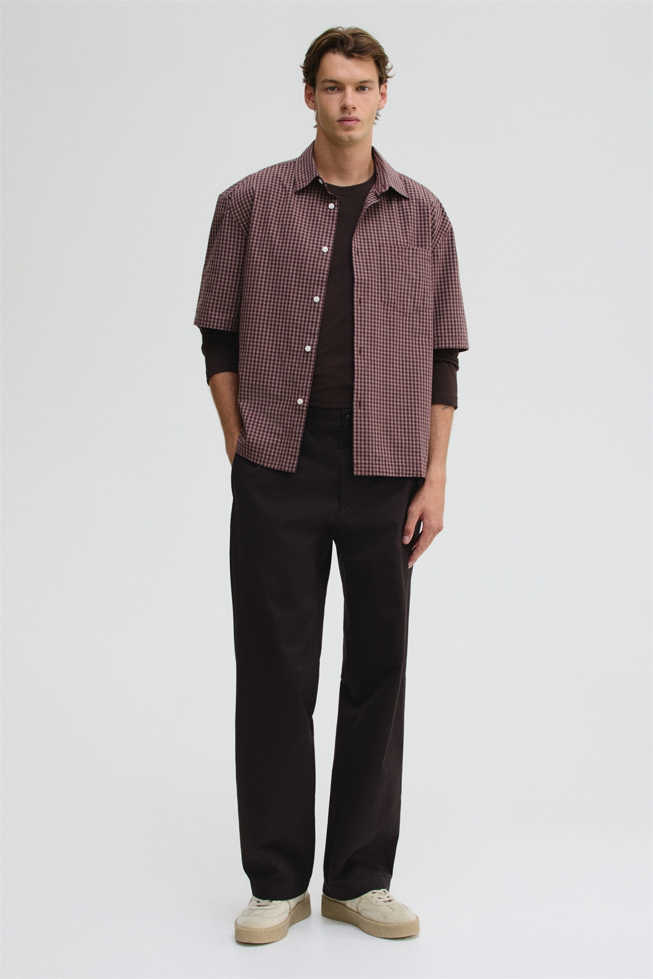 Чиносы из хлопковой саржи с ширинкой на молнии и пуговице, диагональными боковыми карманами, потайным карманом для монет и задними карманами с пуговицей. Свободный крой для непринужденного, но не чрезмерного силуэта.