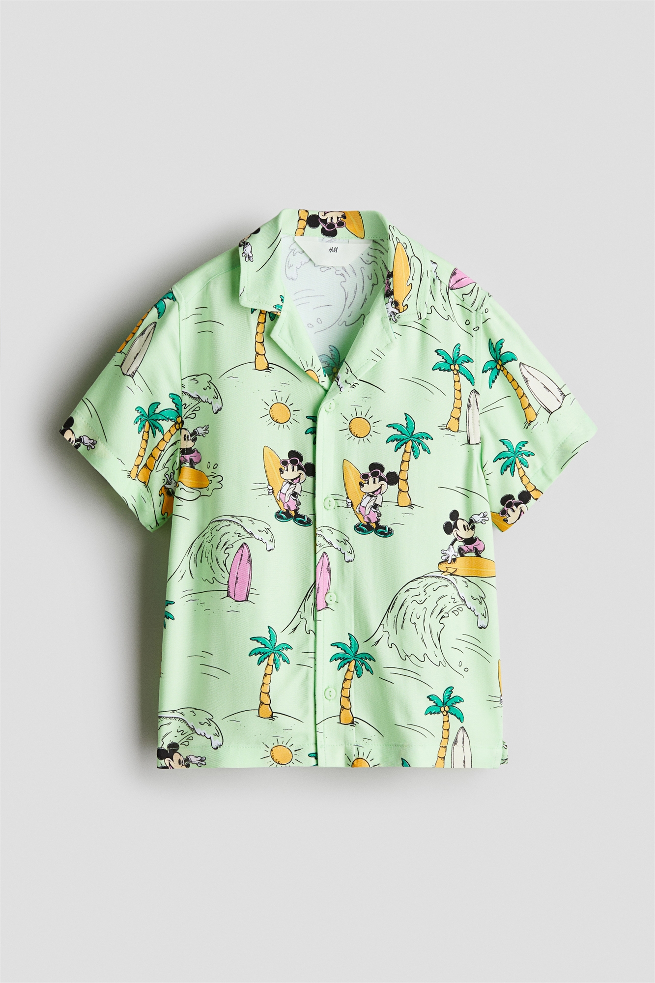 Рубашка с короткими рукавами из воздушной, мягкой вискозы с принтом по всей поверхности. Свободный крой с курортным воротником и пуговицами спереди.