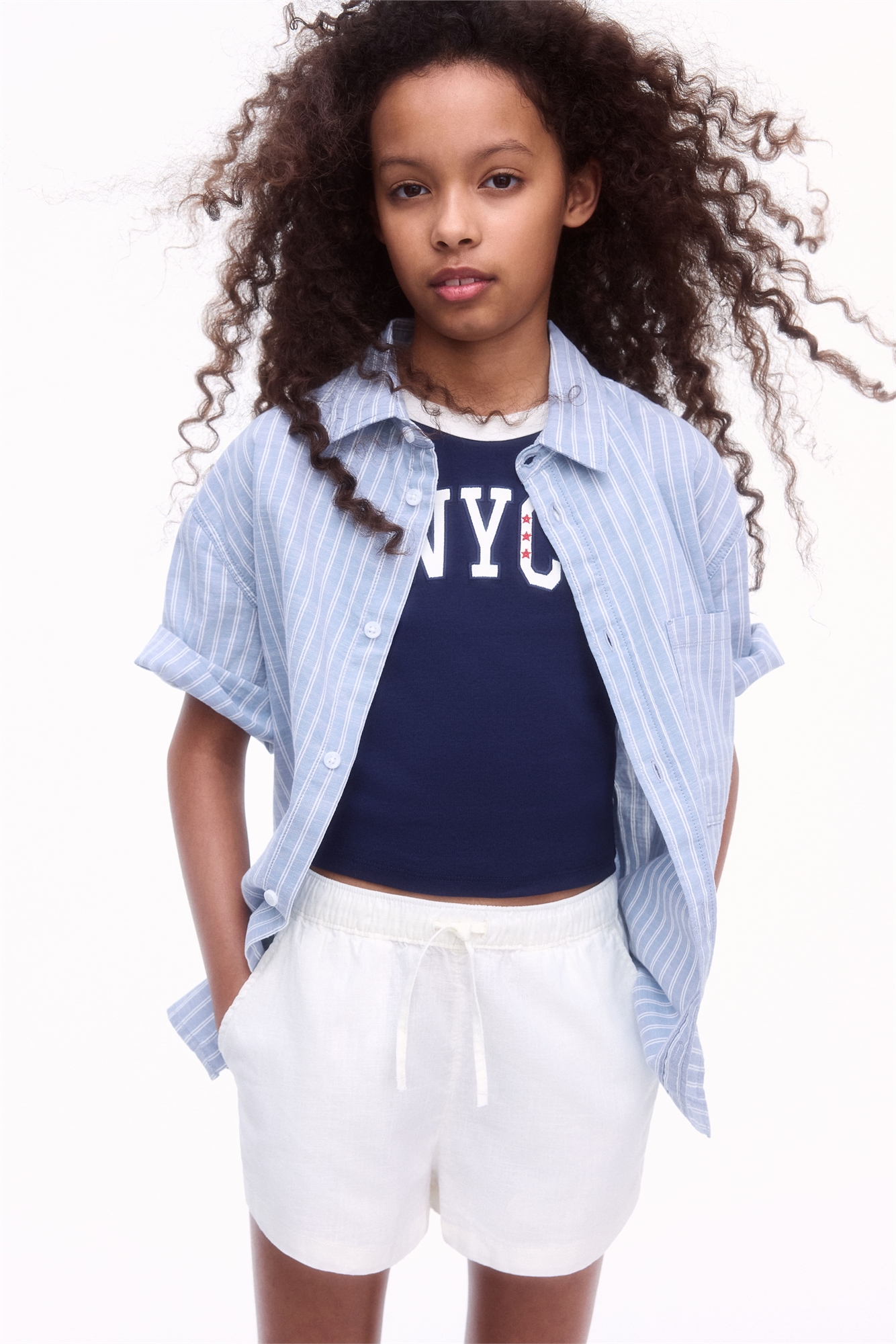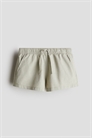 Шорты из смеси льна и хлопка с эластичным поясом и диагональными карманами спереди.