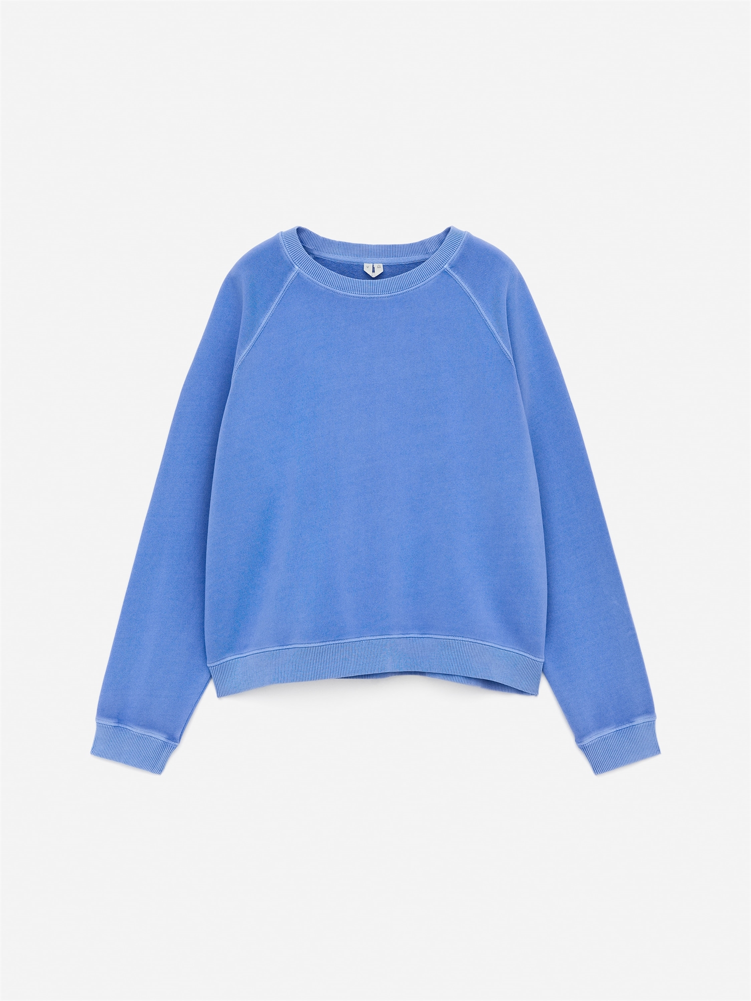 Толстовка с вырезом горловины сшита из мягкой махровой ткани из хлопка. Рукава реглан и ребристая отделка. Обычный крой.