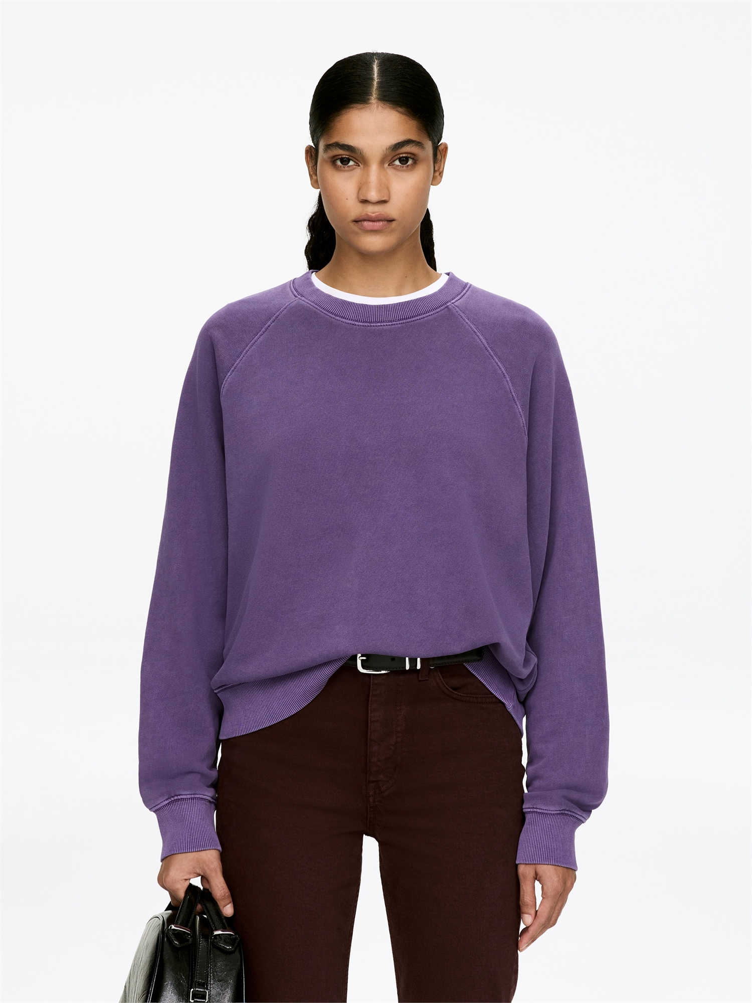 Толстовка с вырезом горловины сшита из мягкой махровой ткани из хлопка. Рукава реглан и ребристая отделка. Обычный крой.