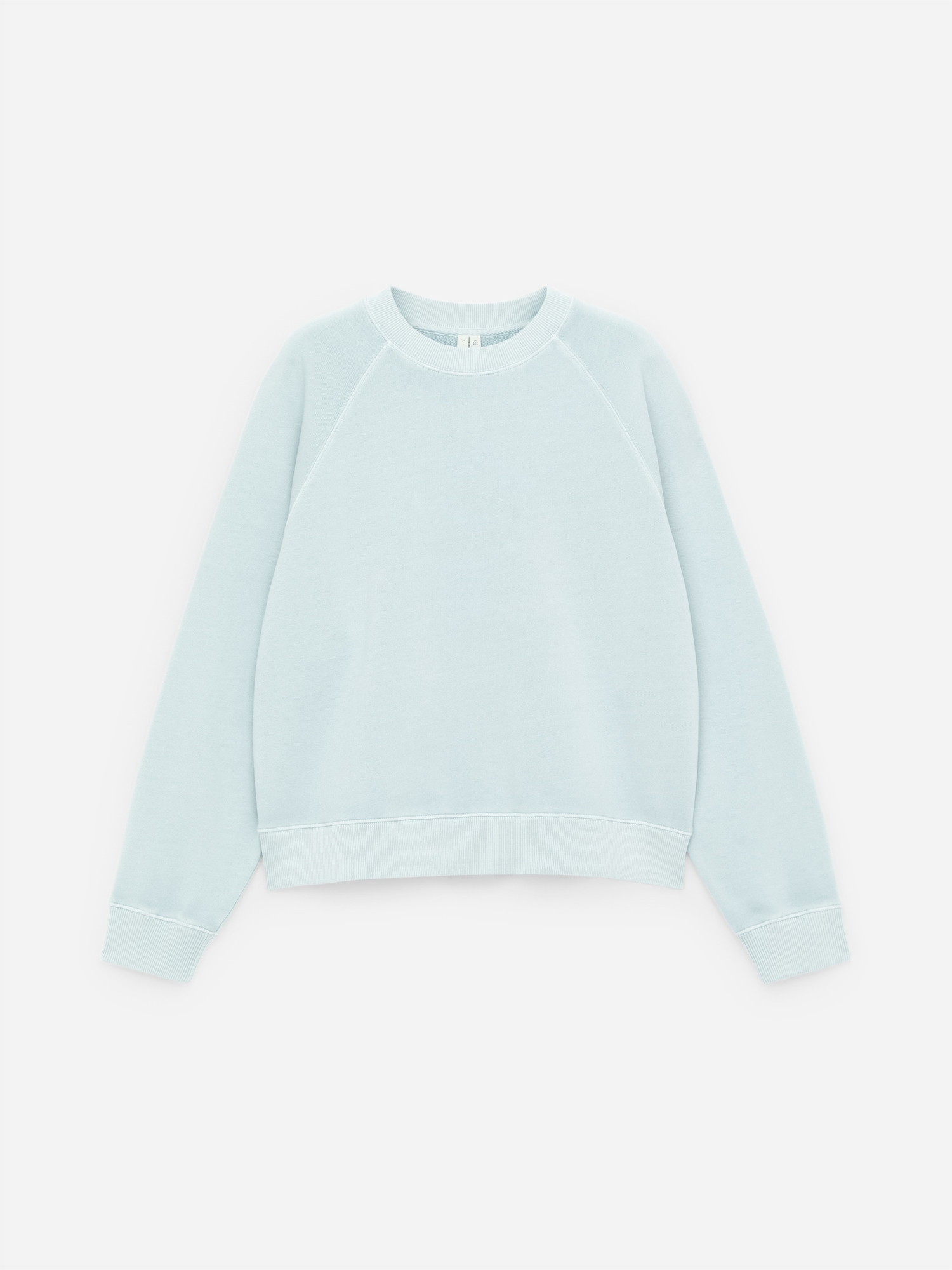 Толстовка с вырезом горловины сшита из мягкой махровой ткани из хлопка. Рукава реглан и ребристая отделка. Обычный крой.