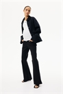 Джинсы с 5 карманами из денима с легким стретчем для комфорта. Зауженный крой с расклешенными ногами, фальшивая ширинка с пуговицей и широкая панель из джерси на талии для лучшей посадки на животе.