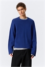 Непринужденный свитер свободного кроя из мягкого хлопкового трикотажа. Классический вырез горловины, спущенные плечи и широкие рукава создают непринужденный силуэт. По краям - гладкие, бесшовные швы.