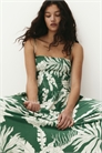 Платье длиной до колена из мятого джерси с лифом, квадратным вырезом и регулируемыми бретелями-спагетти. Присборенный шов на талии и расклешенная юбка.