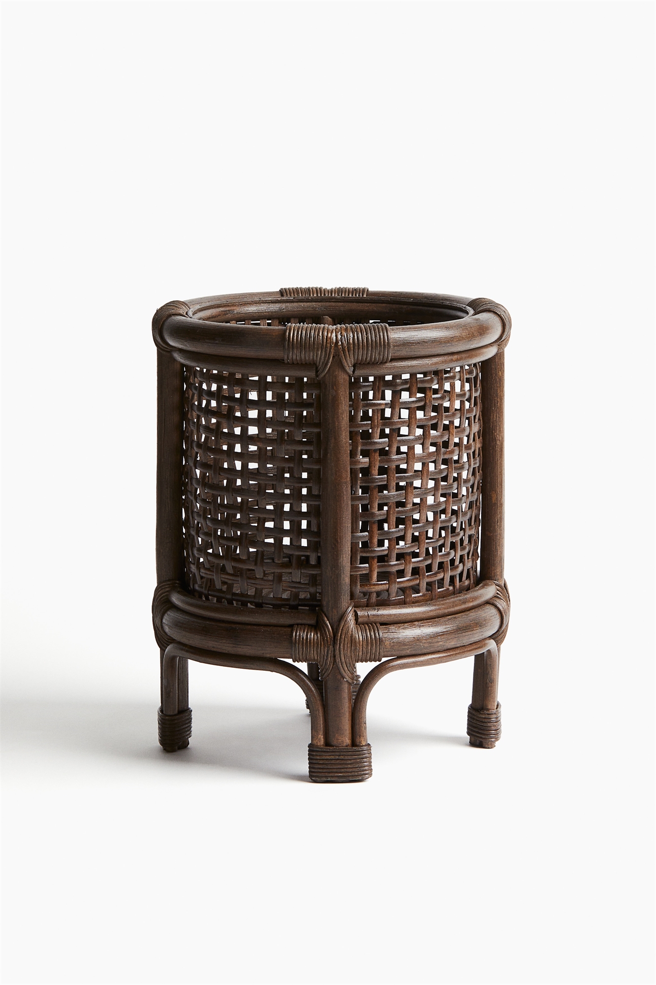 Горшок для растений на ножке изготовлен из плетеного ротанга. Прочная конструкция, которая будет поддерживать цветущие цветы и растения. Диаметр 16,5 см. Высота 25 см.