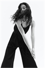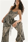 Джемпер из мятого джерси с узкими регулируемыми бретелями и V-образным вырезом с завязками спереди и сзади. Широкий съемный пояс на талии и прямые ноги.