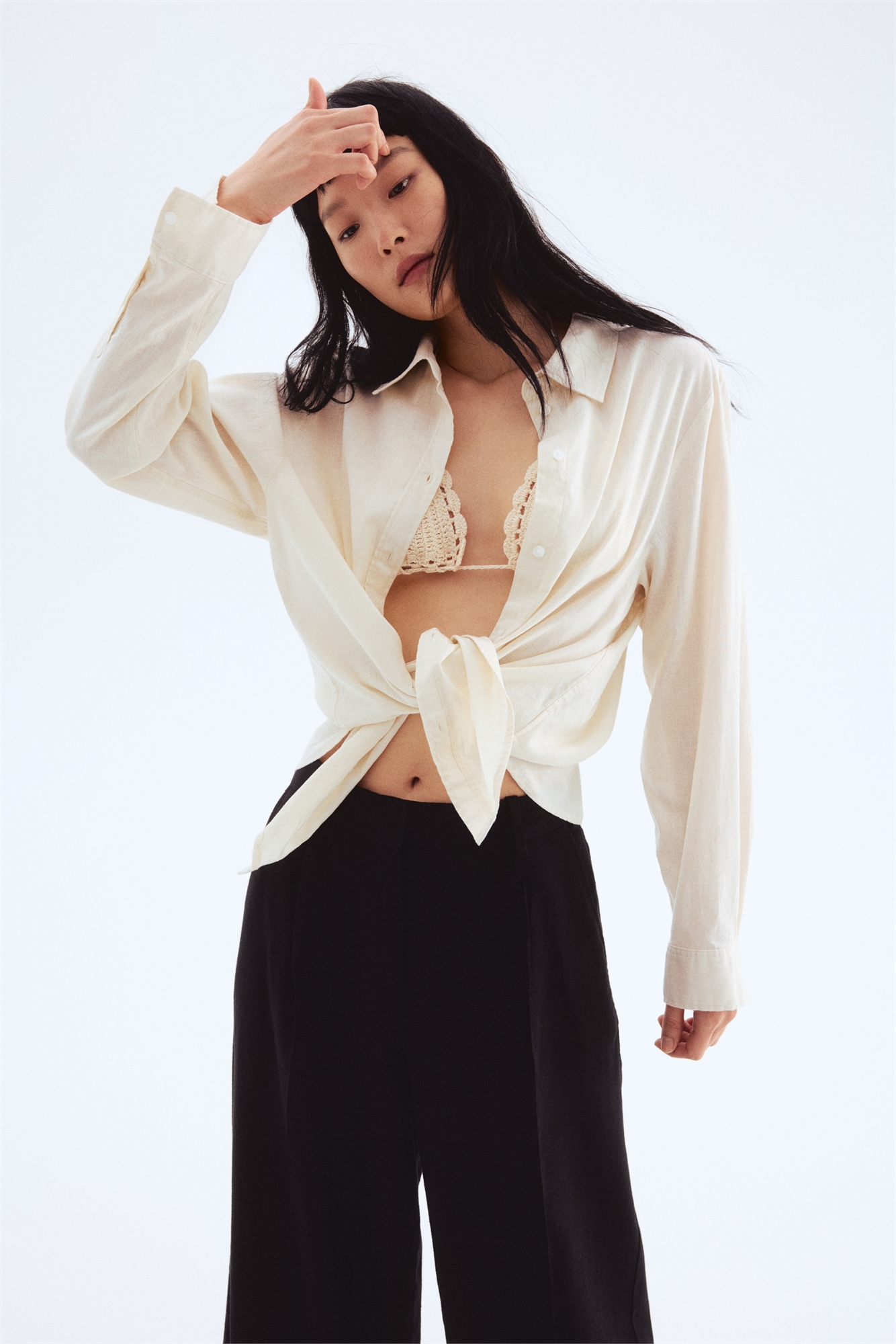 Широкие брюки из льняного бленда