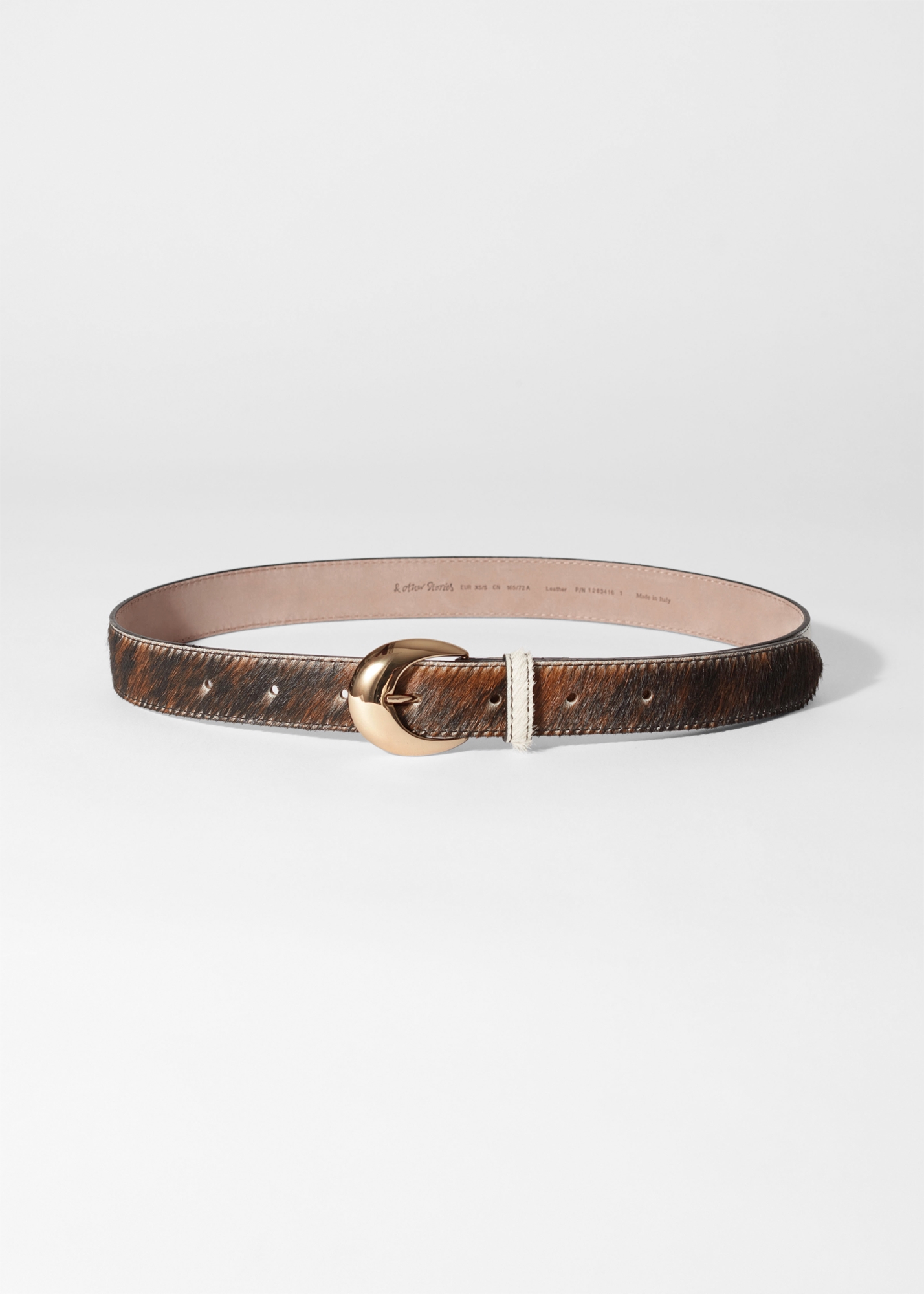 Этот ремень - шикарный и тонкий способ включить в свой наряд возрождающуюся тенденцию коровьего принта. Он изготовлен в Италии из тактильной ворсистой кожи и застегивается на пряжку золотого цвета, чтобы регулировать посадку. Ширина: 3 см / 1,2"
