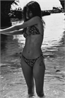 Трусы-бикини на подкладке со средней талией и завязками по бокам. Узкая эластичная резинка и оверлочные швы по краям для создания эффекта оборки. Сзади - окантованный шов и вырез.