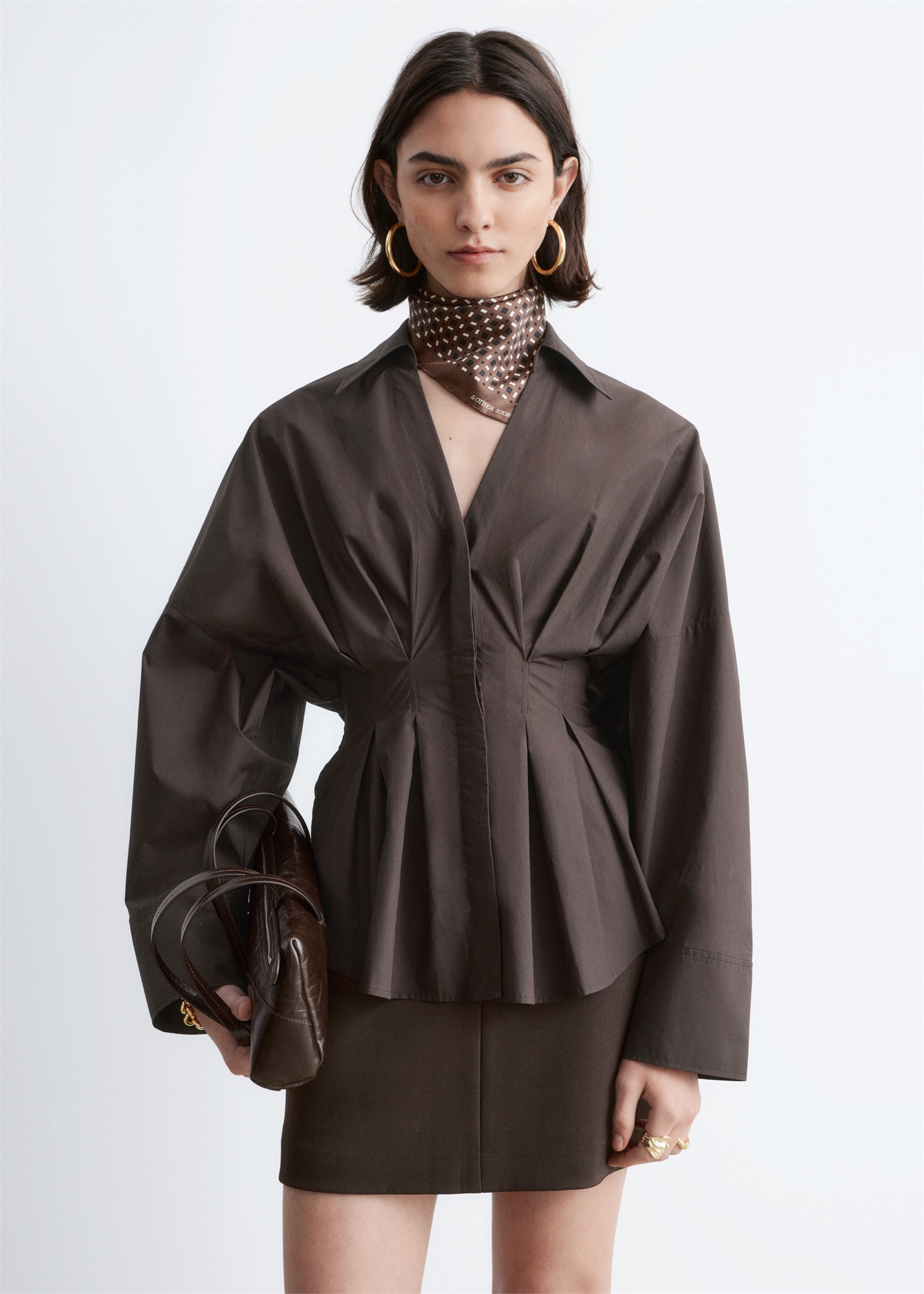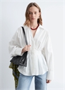 Эта рубашка изготовлена из 100% чистого хлопка и имеет хрустящую, легкую структуру. Скульптурный силуэт, приталенная талия со складками и длинные объемные рукава с манжетами на пуговицах. Отделана открытым воротником и потайной застежкой на пуговицы. Длина рубашки: 68,9 см / 27,1" (EU 36 / UK 8 / US 4)