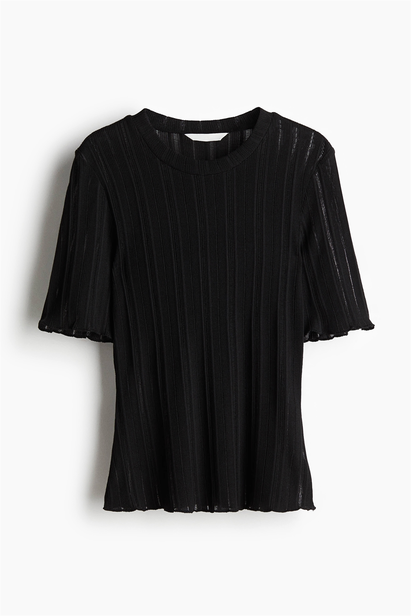 Рубашка с короткими рукавами из свободного ребристого трикотажа с круглым вырезом, манжетами и подолом из оверлока.
