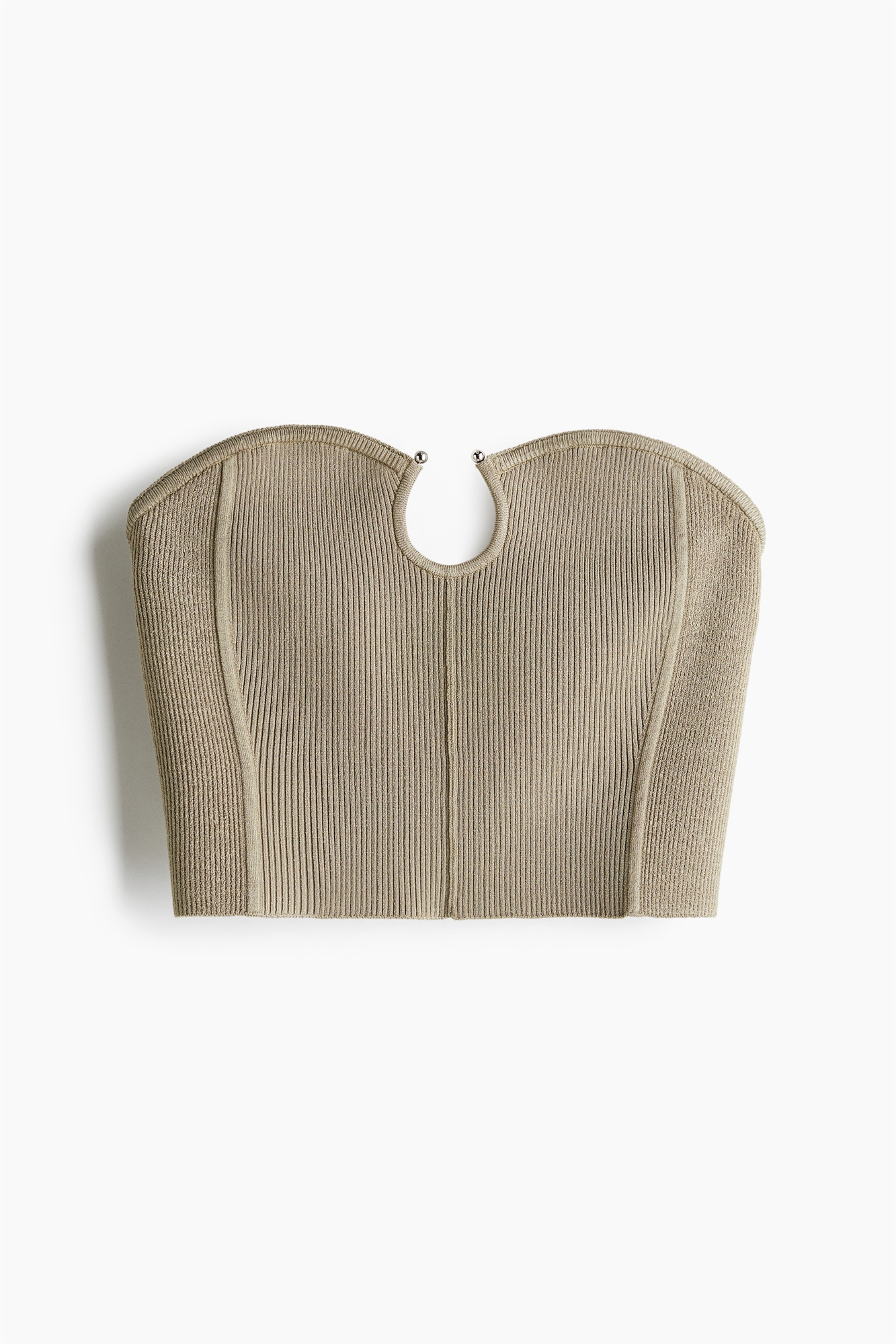 Короткий топ-труба из трикотажа в рубчик с открытыми швами и вырезом в форме сердца с трубчатой отделкой и U-образной проволокой спереди.