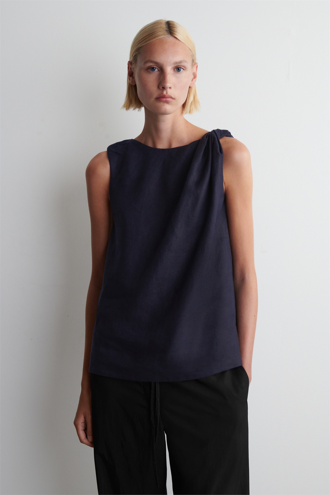 Команда женской одежды переосмысливает фирменные формы через призму современности. Этот изысканный топ, украшенный витой деталью на плече, изготовлен из тактильно приятного на ощупь, естественно легкого льна и выполнен в насыщенном темно-синем цвете. Regular fitПереработанный лен - это лен, полученный из текстильных отходов при производстве или из отслуживших свой срок текстильных отходов. Отходы механически перерабатываются и прядутся в новую пряжу Состав: 70% лен, 30% переработанный лен. Без учета отделки / Машинная стирка Длина по спинке для размера EU 36 составляет 63 см / Модель носит размер EU 36