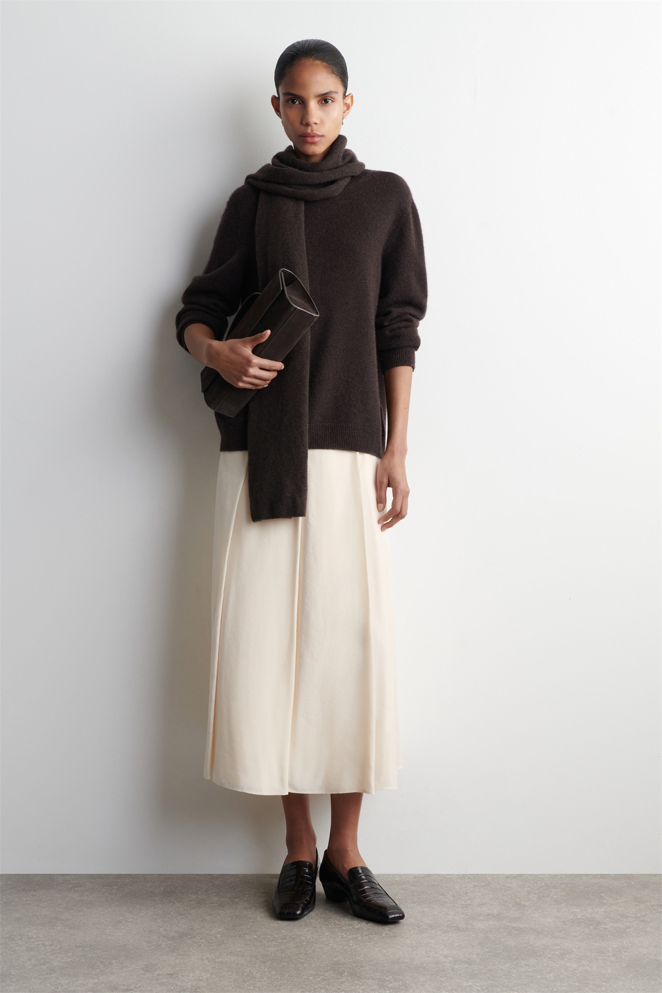 Эта изысканная юбка с мягкими складками, застегивающаяся на тональную пуговицу на талии, - образец простоты. Она представлена в стойком кремовом оттенке и изготовлена из смеси TENCEL™ Lyocell, выбранной за ее естественную легкость и непринужденную драпировку. Дополните ее кожаными шлепанцами в минимальном размере. Обычный кройЗастежка на пуговицах и молнииTENCEL™ Lyocell - это регенерированное древесное волокно, изготовленное из древесной целлюлозы. Оно производится по замкнутому циклу, где химикаты используются повторно Оболочка: 55% вискозы, 45% TENCEL™ Lyocell. Подкладка: 100% вискозы. Без учета отделки / Машинная стирка Длина по спинке для размера EU 36 составляет 74 см / Модель носит размер EU 36