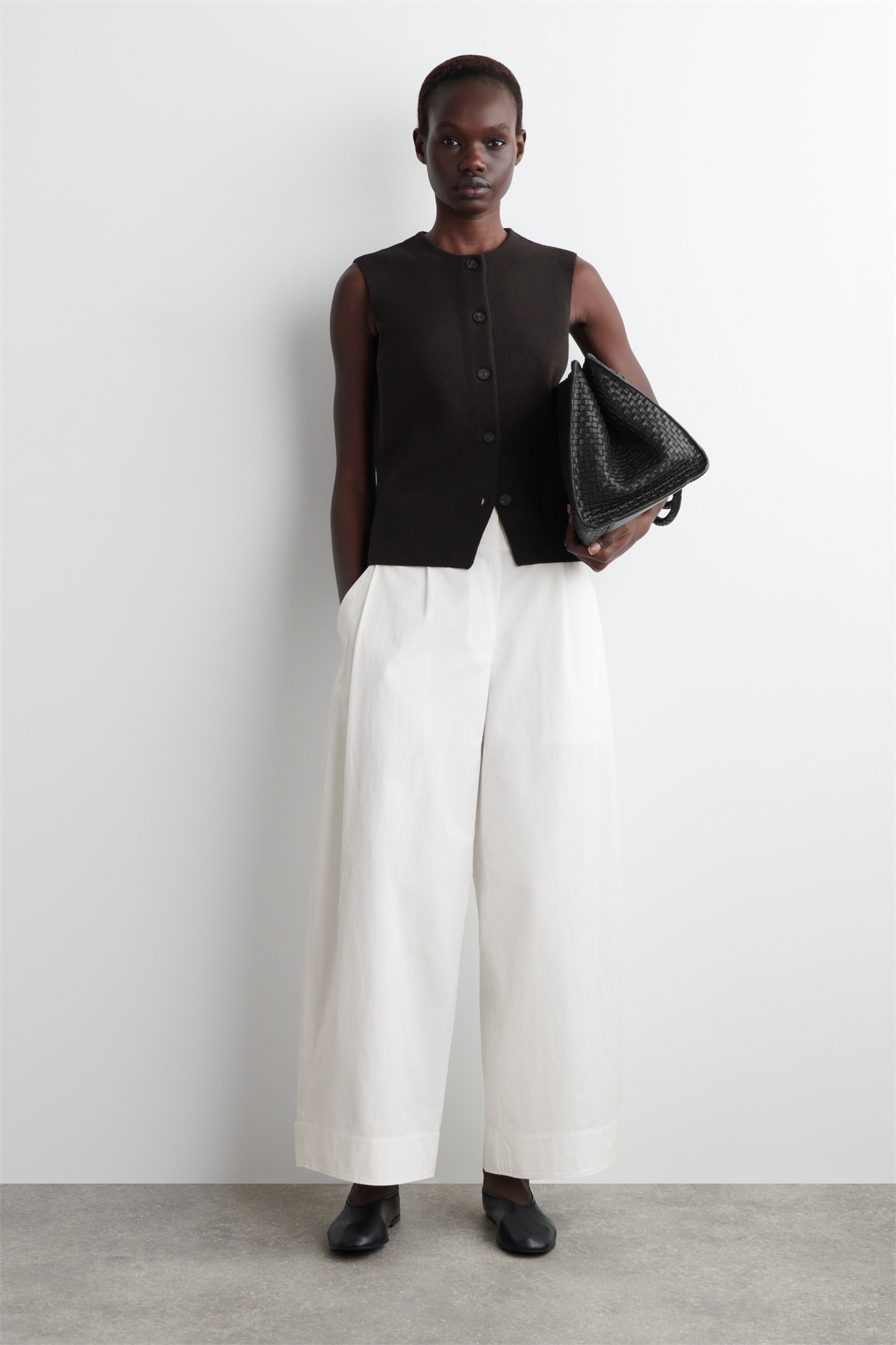 Брюки с бочкообразными ногами - фирменный знак гардероба COS. Эта пара сшита из хлопка, достаточно легкого для круглогодичного ношения, и украшена складками и множеством карманов. Экспериментируйте со стилем, регулируя завязки на талии и лодыжках. Расслабленный кройЗастежка на крючок, планку и молнию Материал: 98% хлопка, 2% эластана. Без учета отделки / Машинная стирка Внутренняя длина ноги размера EU 36 составляет 63,8 см / Модель носит размер EU 36