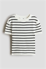Короткий топ из мягкого трикотажа в рубчик с круглым вырезом и короткими рукавами.