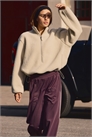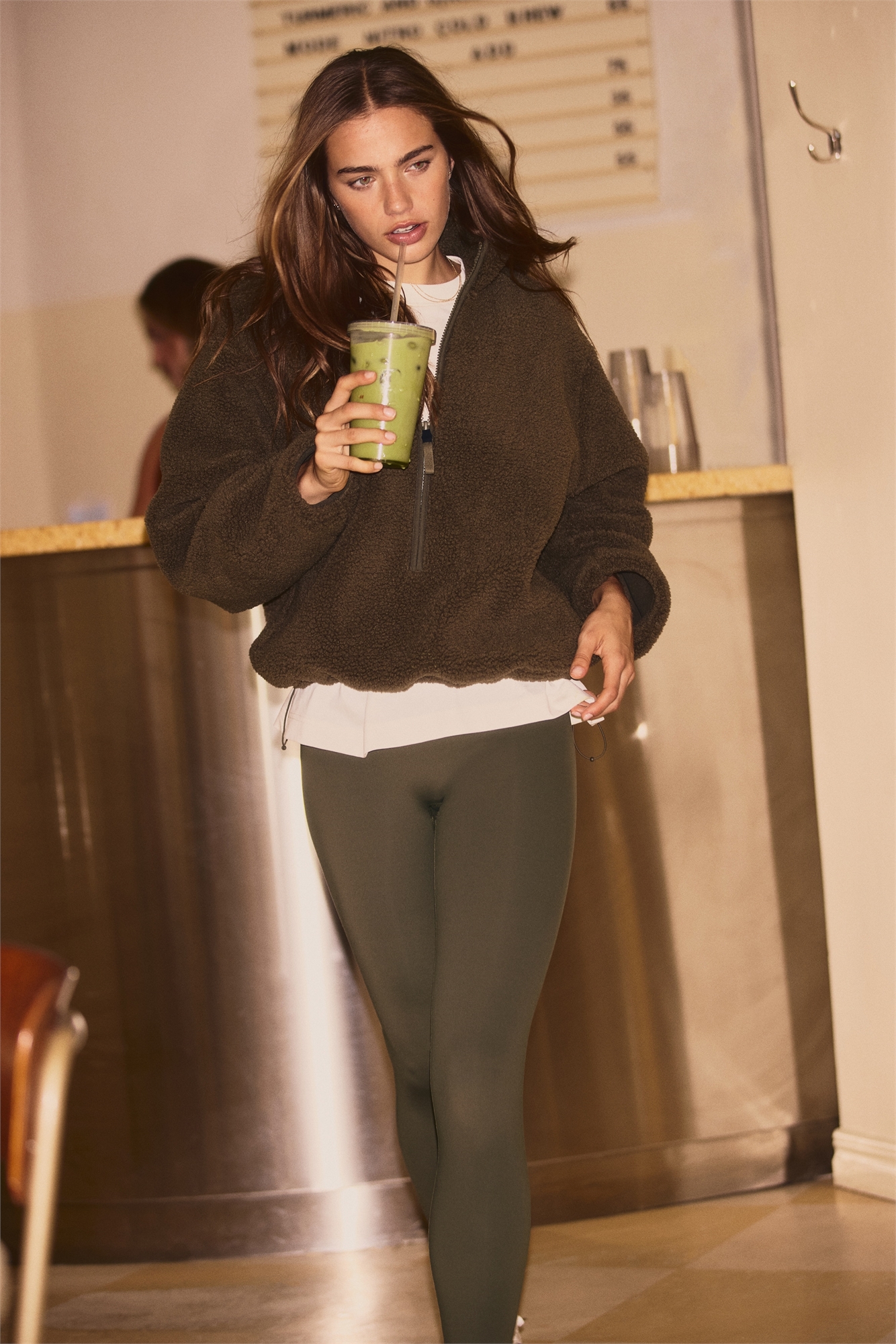 Короткий спортивный топ из согревающего тедди с воротником-стойкой, застежкой-молнией спереди, карманами на молнии и потайным эластичным шнурком по подолу. Воротник, молния и манжеты отделаны эластичной тесьмой.
