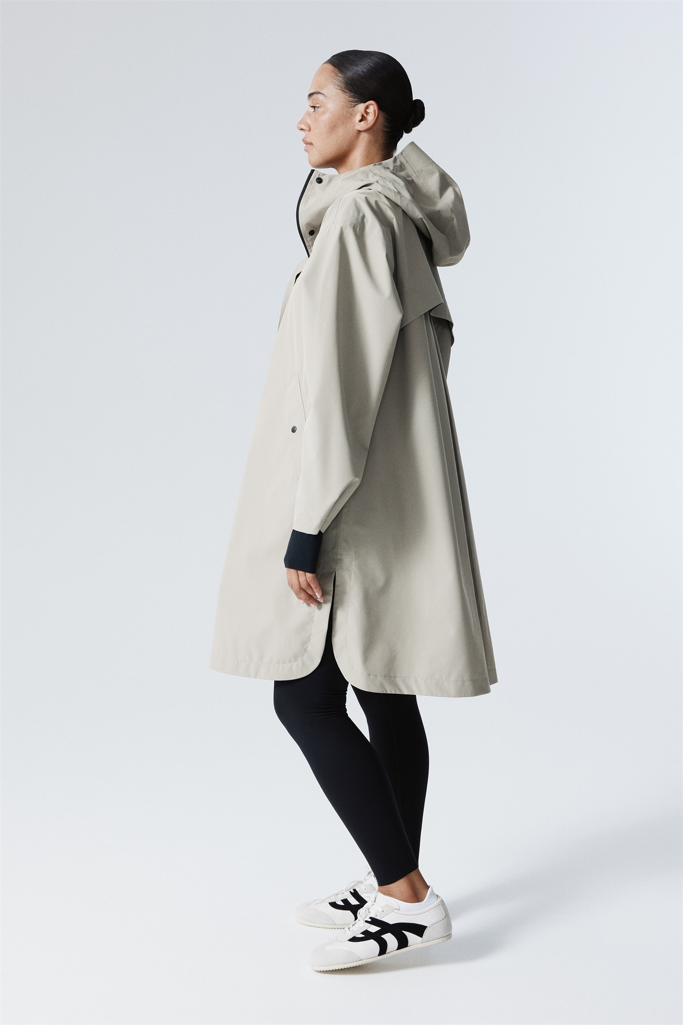 Дождевая куртка из функциональной ткани StormMove™ для защиты от ветра и дождя, а также дышащей ткани в любую погоду. Свободный крой с капюшоном с козырьком и эластичным шнурком сзади для плотной и надежной посадки. Застежка-молния и ветрозащитный клапан с прижимными кнопками спереди, спущенные плечи и длинные рукава с регулируемой прижимной кнопкой на манжетах. Диагональные накладные карманы с каждой стороны с прижимной планкой, а также свободные ярмо и перевернутая складка сзади для вентиляции и легкости движений. Закругленный подол с высокими боковыми вентиляционными отверстиями. Полностью проклеенные швы. Сетчатая подкладка.