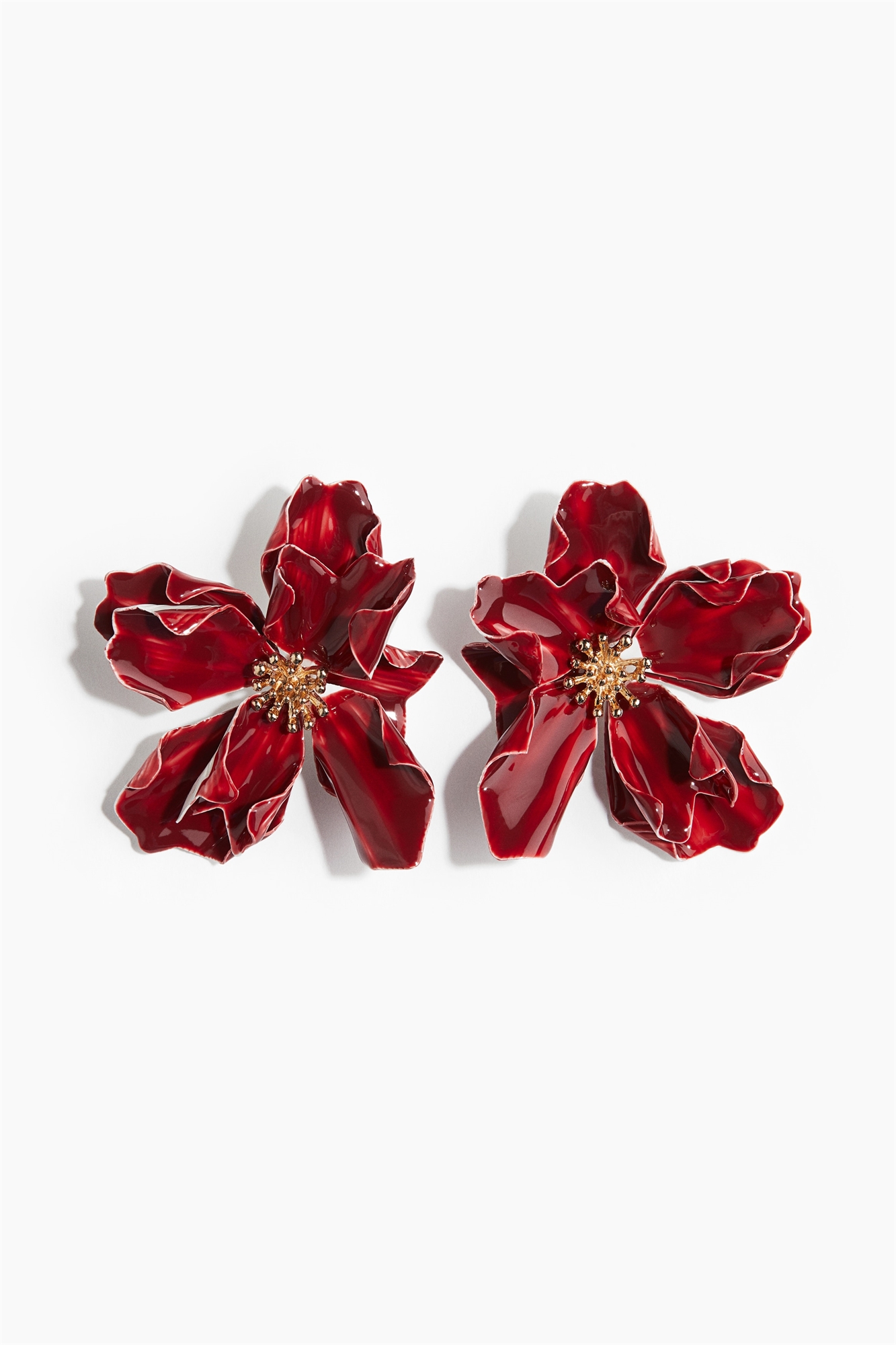 Металлические серьги в форме цветка с маленькими блестящими бусинами в центре.