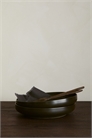 Низкая, широкая сервировочная чаша из керамогранита, покрытая реактивной глазурью, которая создает красивую, пеструю окраску, придавая каждой чаше уникальный вид.