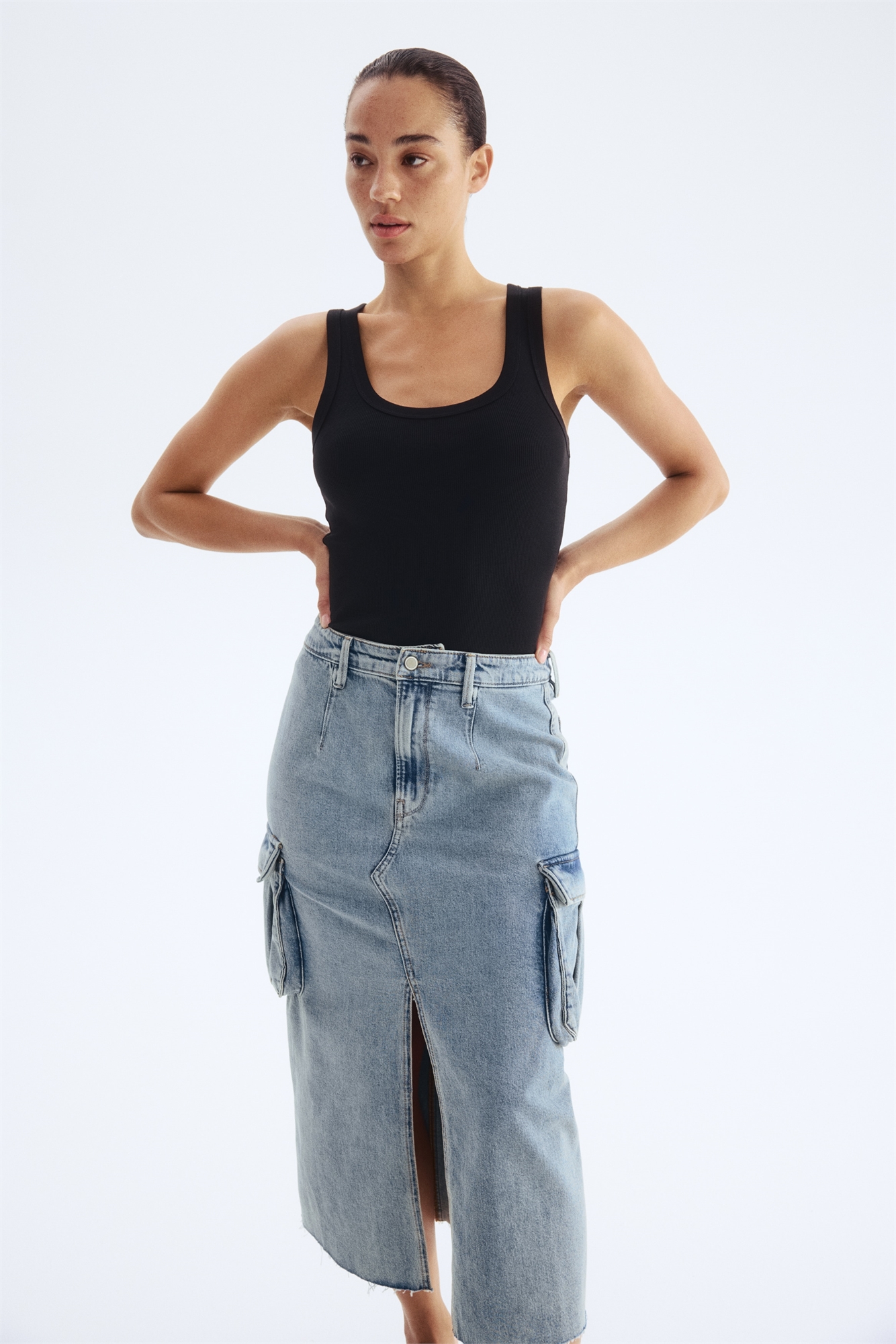 Поднимите свой стиль на новый уровень с нашей джинсовой юбкой-карго. Эта уникальная вещь сочетает в себе функциональность и стиль, предлагая карманы для практичности без ущерба для стиля. Наденьте ее с простой футболкой или милым топом для создания непринужденного, но шикарного образа.