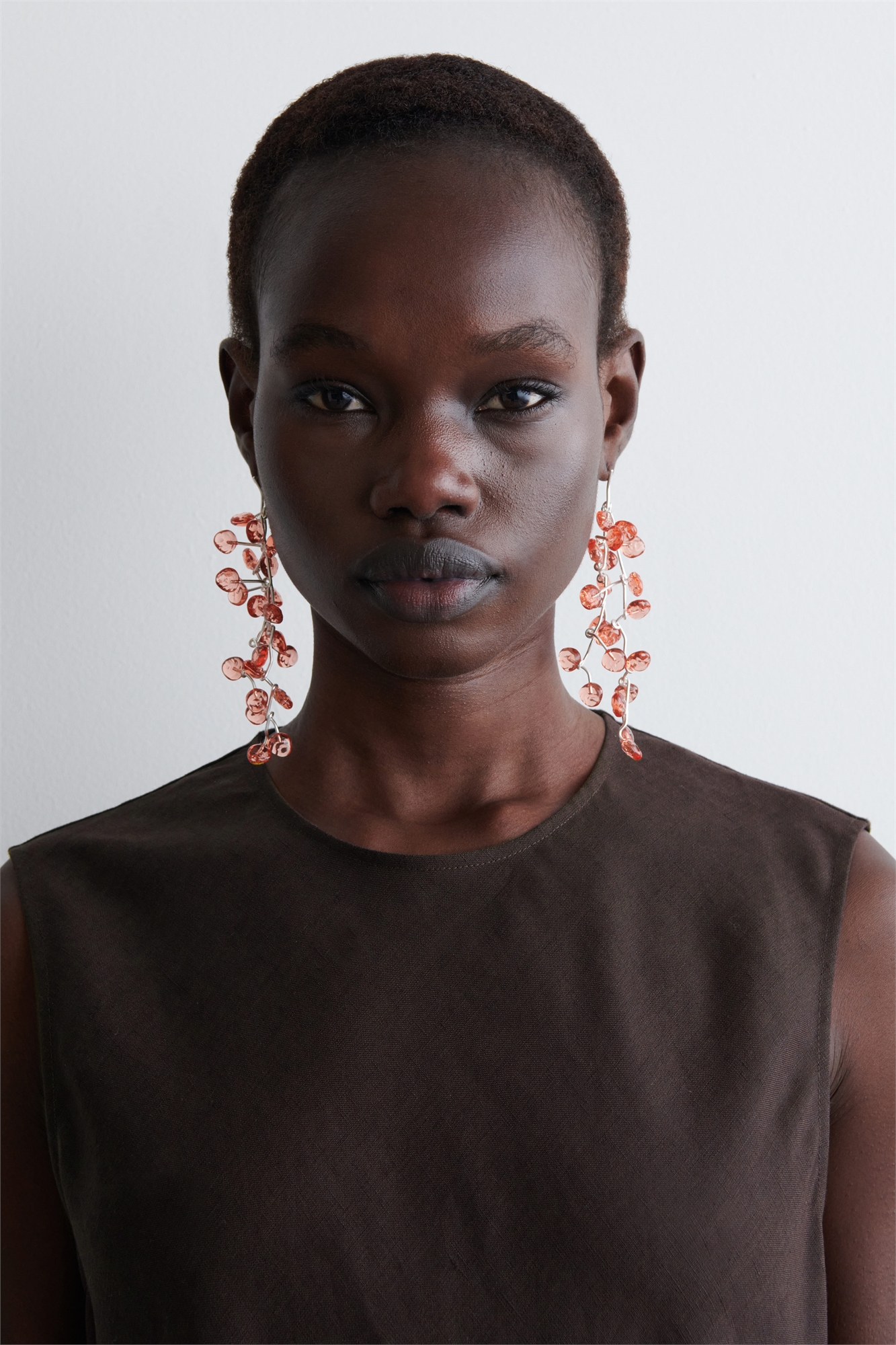 Говорящие аксессуары придают индивидуальность даже самым скромным образам. Эти яркие серьги, красиво ниспадающие каскадом из уха, имитируют цветочные бутоны, падающие со стеблей из посеребренной проволоки. Уложите их с убранными назад волосами. Застежка-пуансонБрасс - универсальный материал, который может быть переработан множество раз без потери своих свойств Оболочка: 52% переработанного полиметилметакрилата, 48% переработанной после потребления латуни. Покрытие: 100% серебро. Без учета отделки Длина серег 10,3 см.