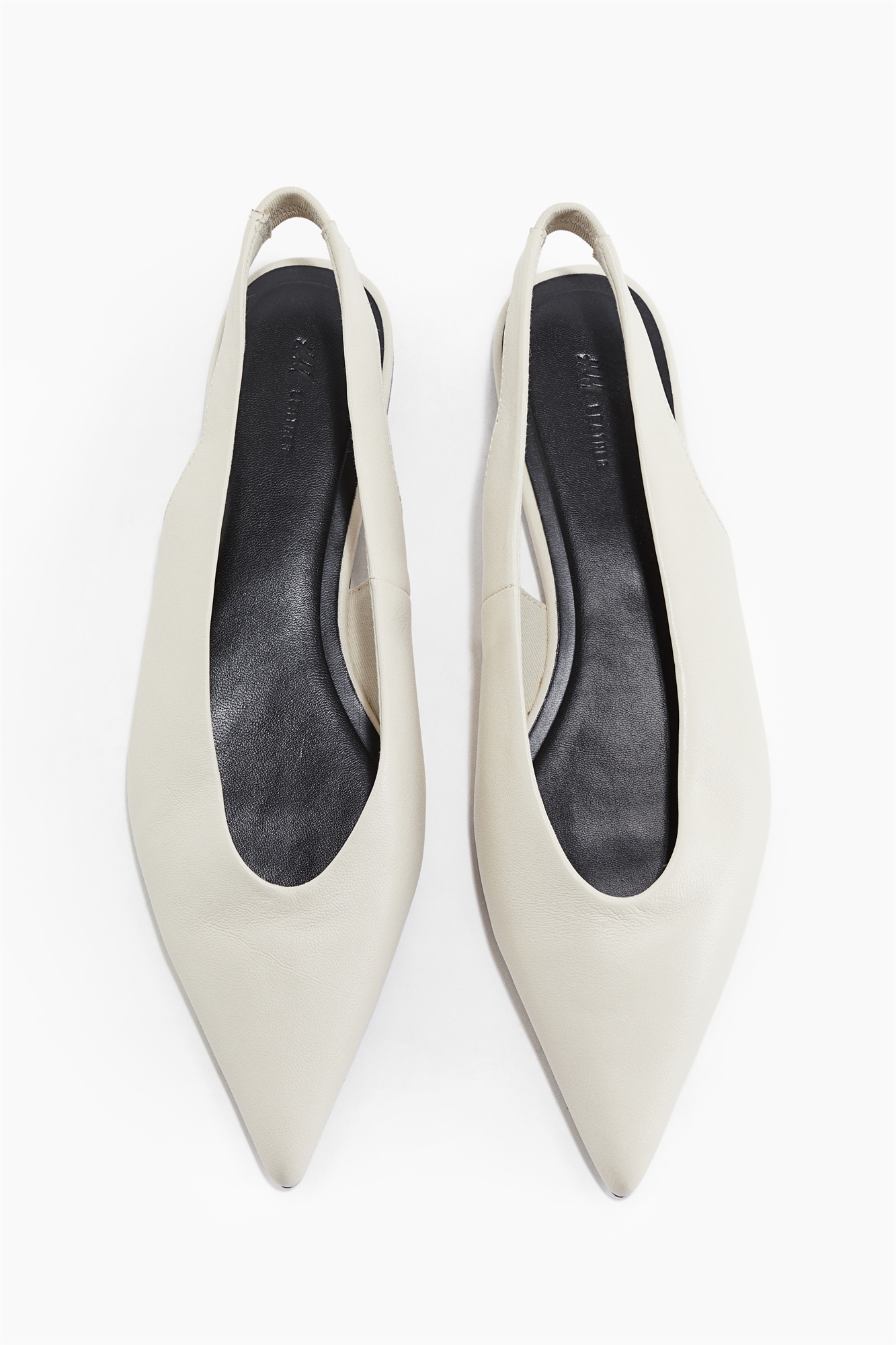 Босоножки из мягкой кожи с заостренным носком и эластичным ремешком на пятке. Подкладка из саржи и кожаная стелька.