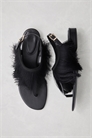 Сандалии с ремешками из лакированной ткани, украшенные бахромой по всей ноге. Закругленные носки с мыском и узкий регулируемый ремешок на щиколотке с квадратной металлической пряжкой.