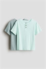 Футболки из мягкого хлопкового джерси с круглым вырезом в рубчик и застежкой на пуговицы.