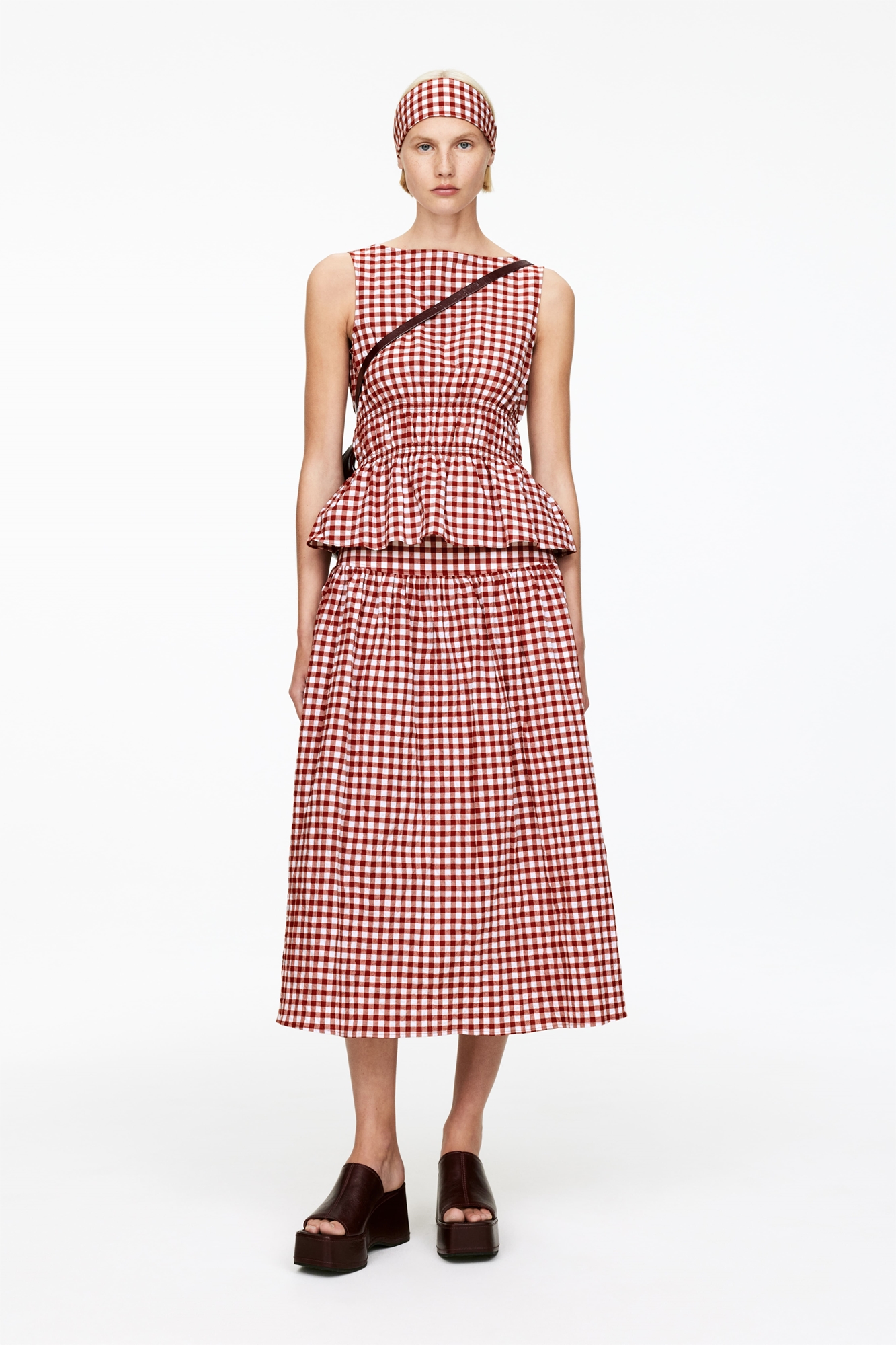 Длинная юбка из воздушной ткани seersucker, изготовленной из хлопка с добавлением эластана. Обычный крой.