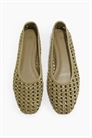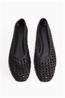Балетки из пластичной соломы с квадратными мысками и узкой окантовкой вокруг отверстия.