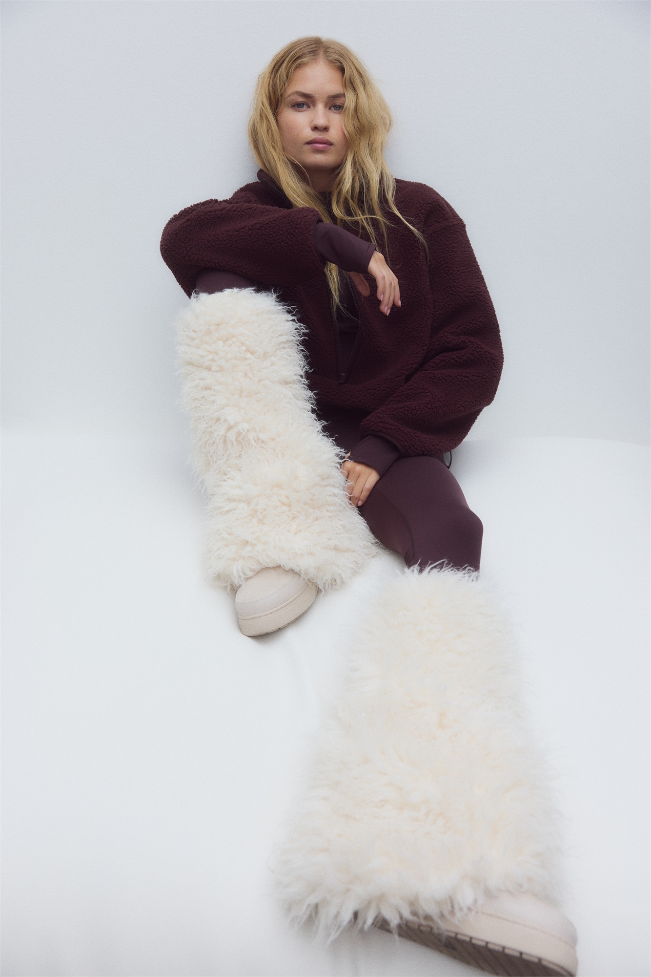 Расклешенные гетры из мягкой пушистой ткани с эластичным верхом.