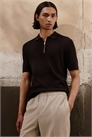 Рубашка-поло с короткими рукавами из тонкого трикотажа из смеси хлопка с ребристым воротником, застежкой-молнией в верхней части и тонкой тесьмой на манжетах и подоле. Зауженный крой, облегающий контуры тела и создающий приталенный силуэт.