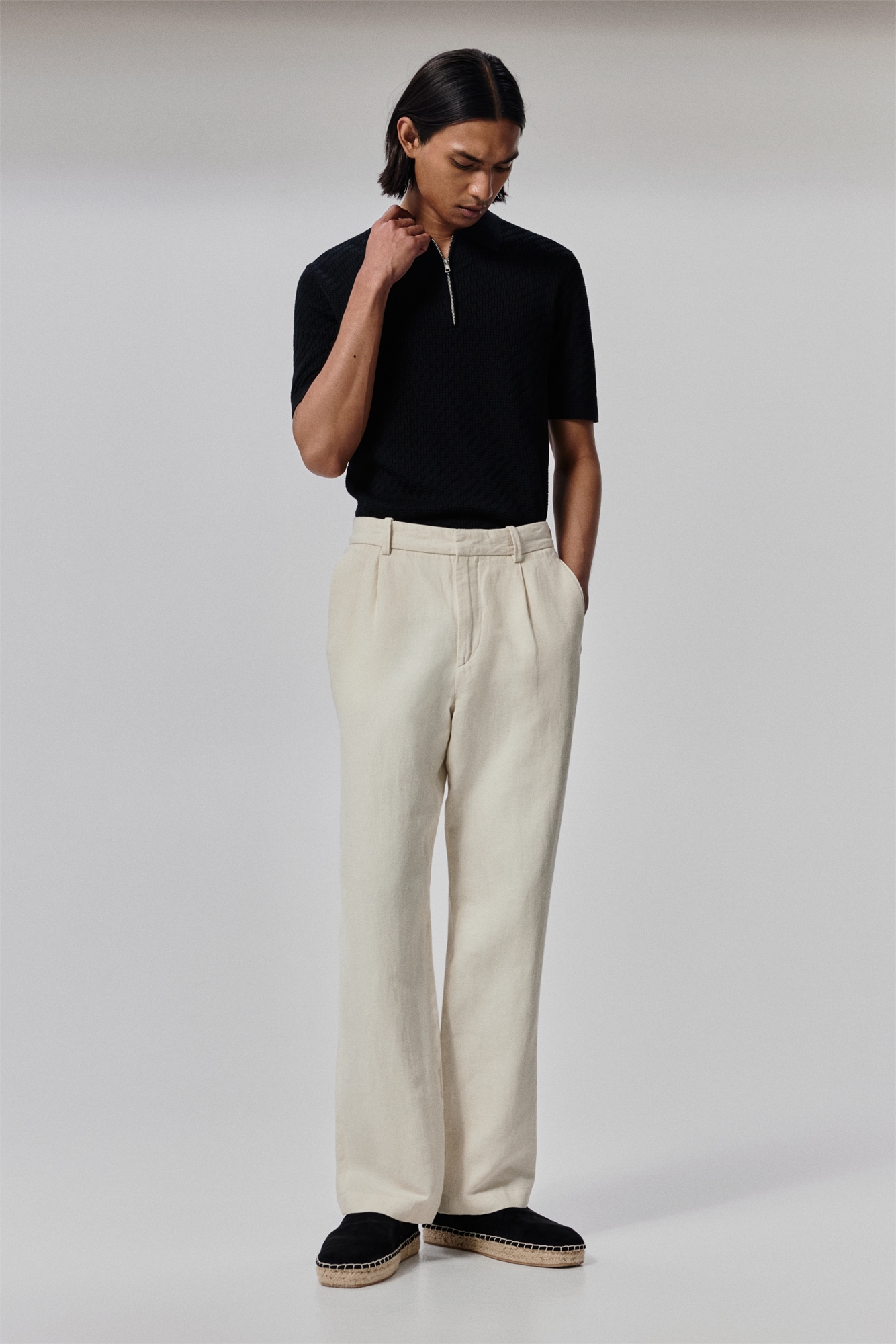 Рубашка-поло с короткими рукавами из тонкого трикотажа из смеси хлопка с ребристым воротником, застежкой-молнией в верхней части и тонкой тесьмой на манжетах и подоле. Зауженный крой, облегающий контуры тела и создающий приталенный силуэт.