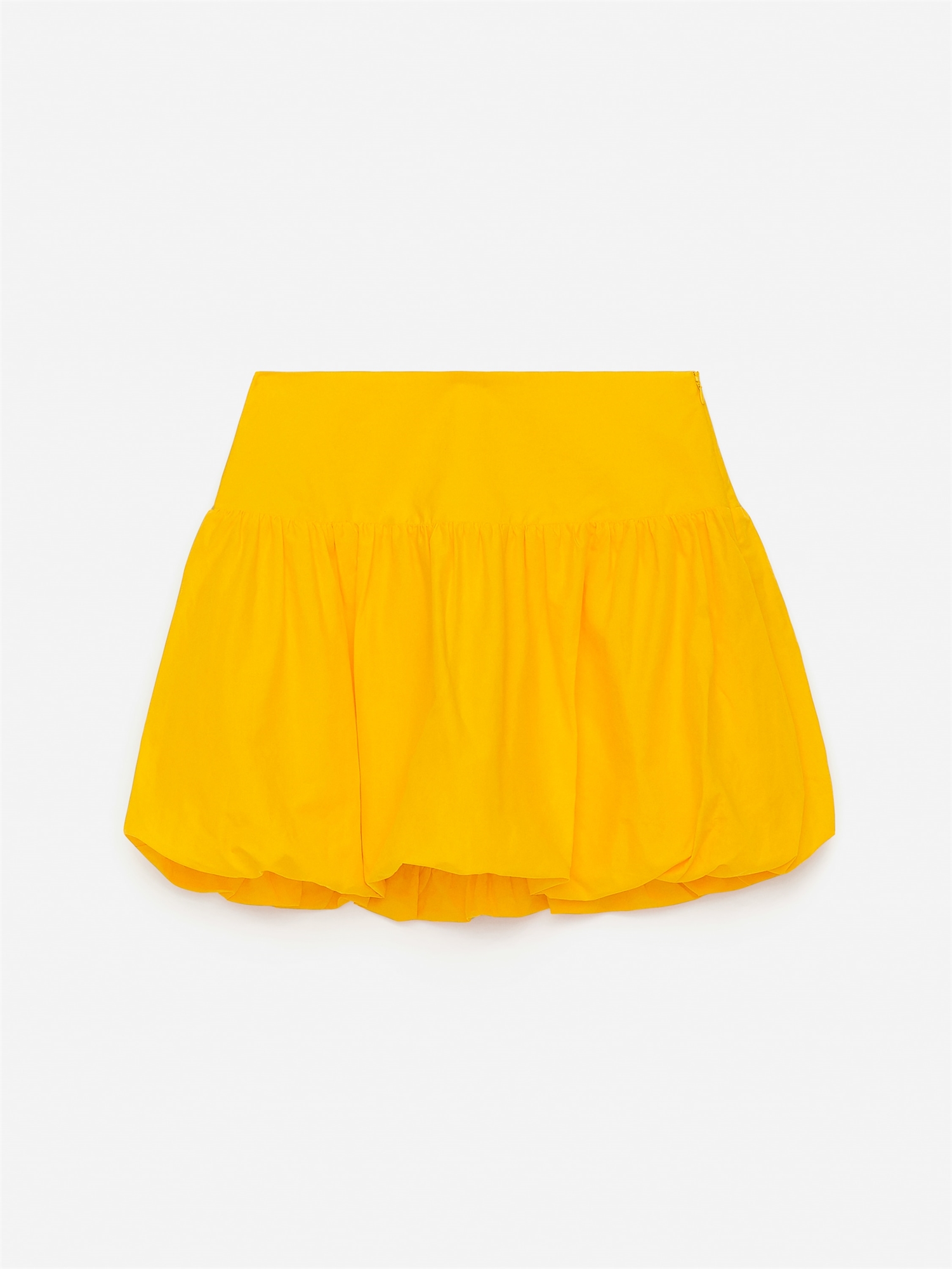 Мини-юбка из хлопково-льняной смеси, подол-баллон и потайная молния с застежкой на крючок и глазок. Обычный крой.