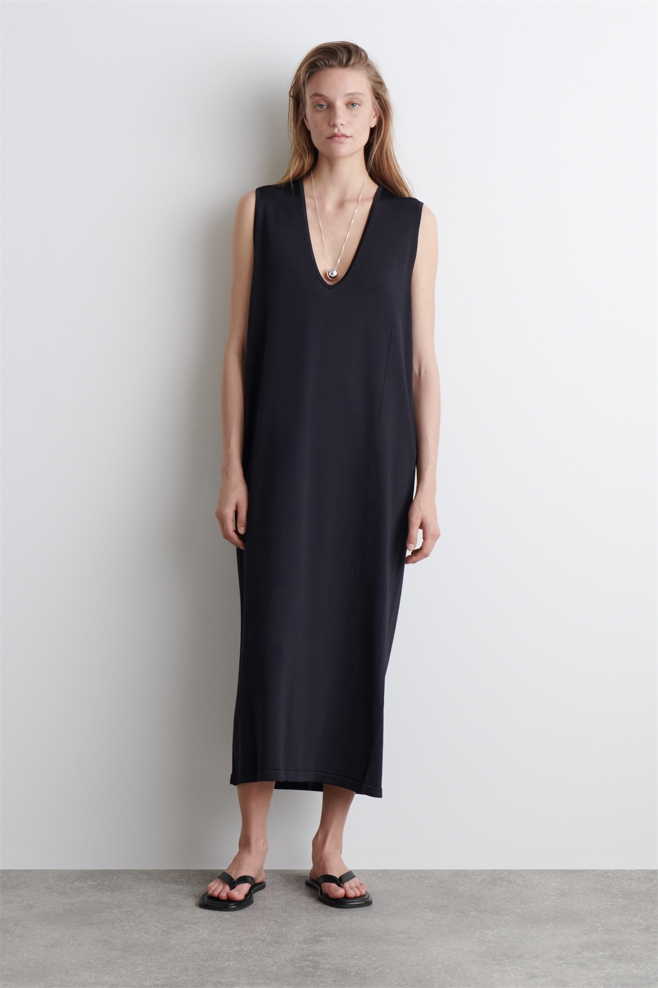 Для сезона весна-лето 2025 команда женской одежды переосмыслила вещь из архивов COS. Это платье, воплощающее современную утонченность, сшито из натурального дышащего хлопкового материала с мягким блеском. Оно имеет классический покрой с глубоким вырезом и будет смотреться как отдельно, так и поверх футболки. Regular fit Материал: 60% вискоза, 40% хлопок. Без учета отделки / Машинная стирка Длина по спинке для размера S составляет 124 см / Модель носит размер S