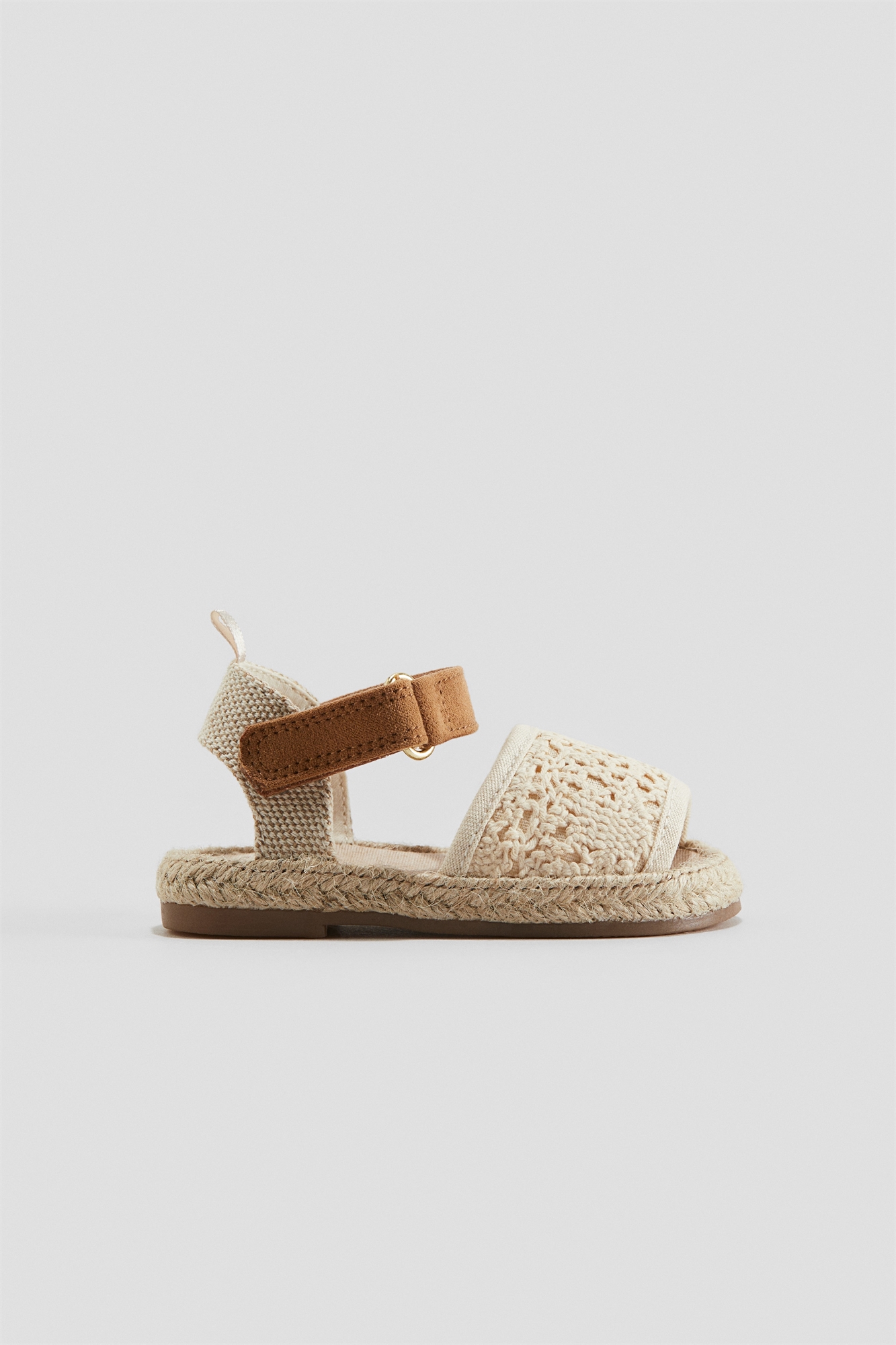 Сандалии из хлопкового холста с ремешком через стопу и ремешком на щиколотке с застежкой на крючок и петлю. Стелька из технической пены Cellfit™ для дополнительного комфорта. Плетеная джутовая отделка вокруг подошвы.