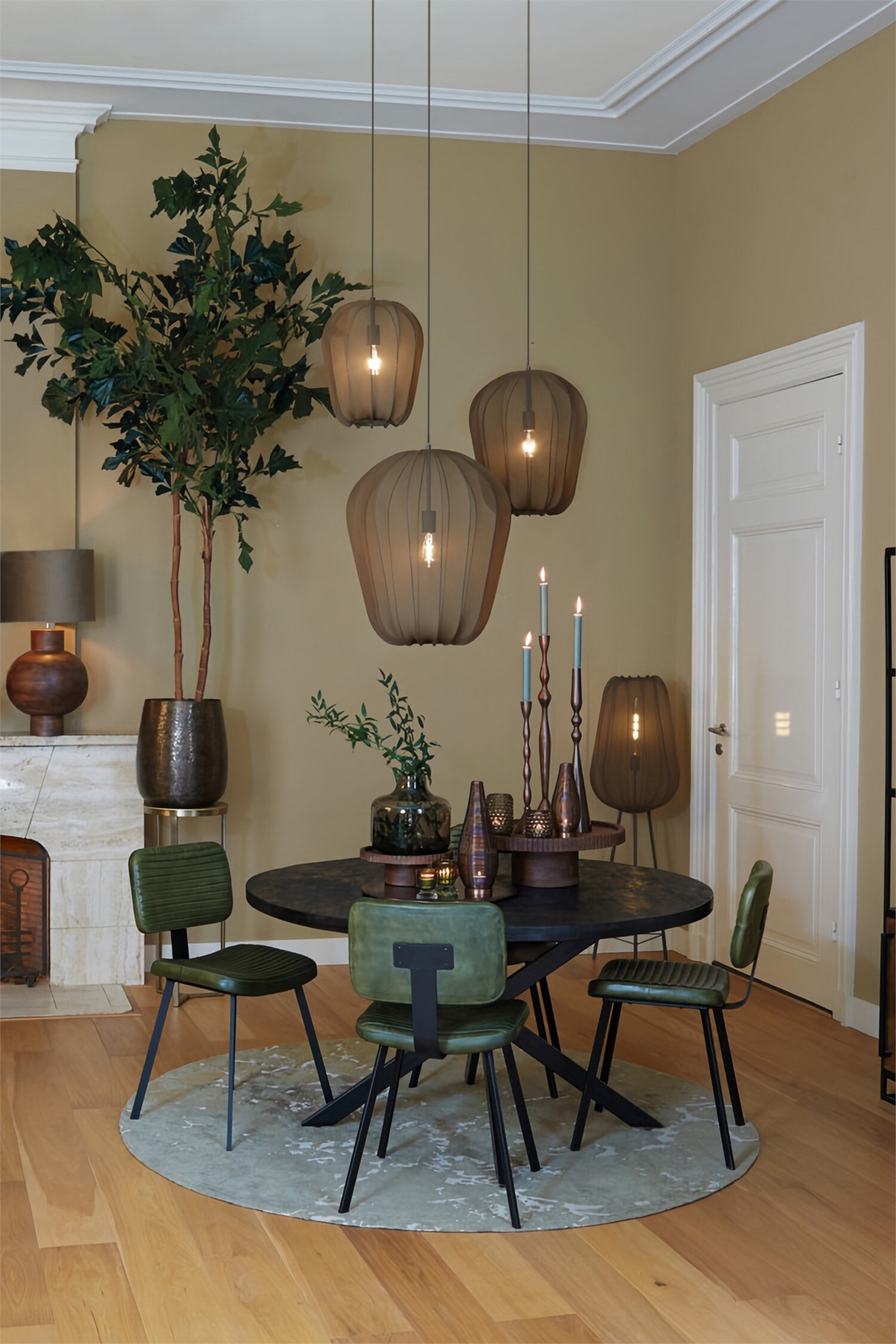 Погрузитесь в теплую и гостеприимную атмосферу с подвесным светильником Plumeria. Эта элегантная лампа отличается уникальным дизайном абажура, в котором мягкий темно-зеленый текстиль обернут вокруг прочного каркаса из металлической проволоки. Лампа Plumeria диаметром 42 см создает приятный рассеянный свет, который обеспечивает расслабление в спальне и придает элегантность в гостиной. Сочетание натуральной текстуры ткани и индустриального оттенка металлического каркаса создает визуально интригующую вещь, которая подходит для различных стилей интерьера. Размер: 42 x 42 x 50