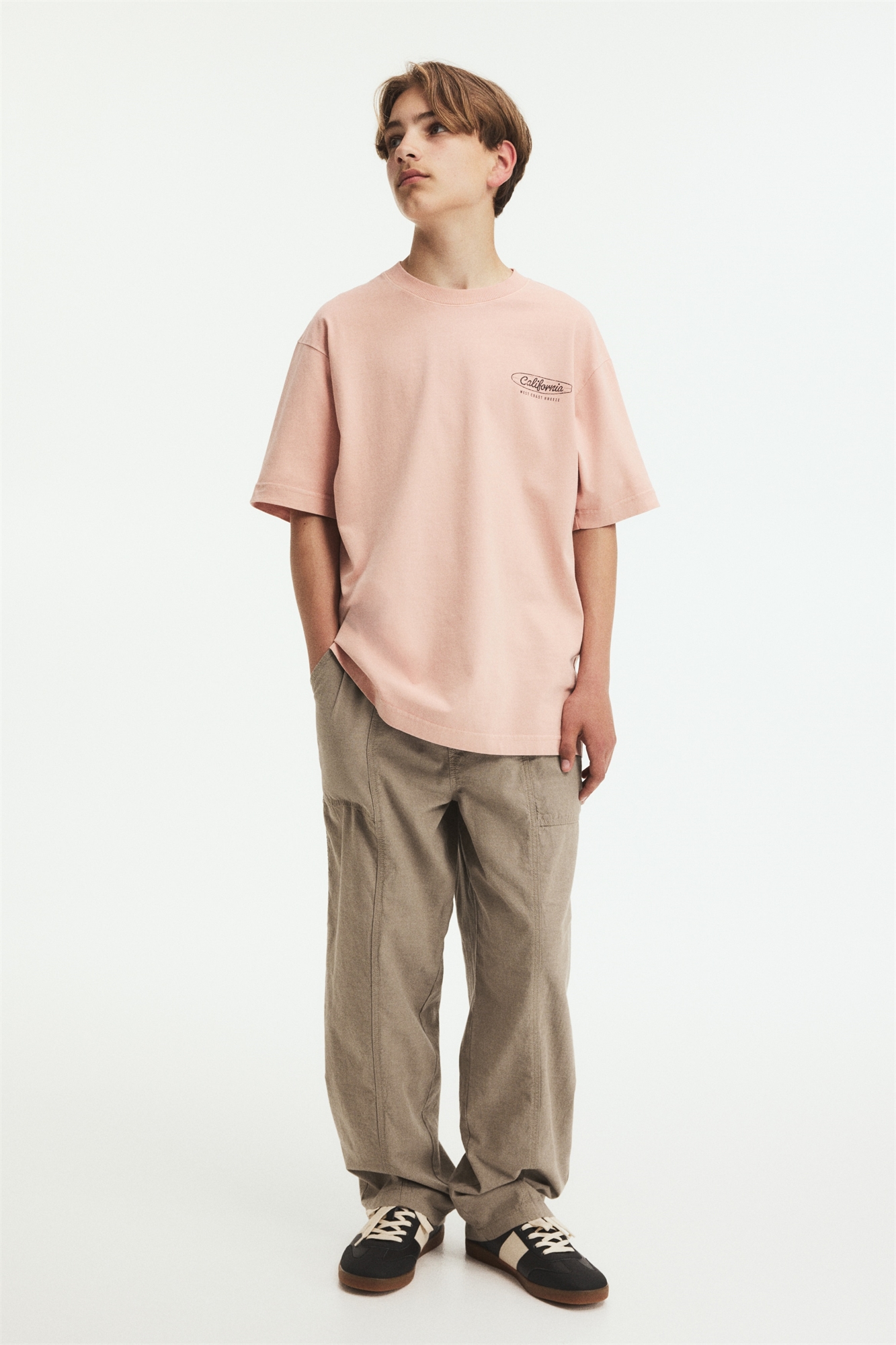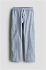 Джоггеры из хлопкового поплина свободного покроя. Эластичный пояс с завязками, фальшивая ширинка, накладные карманы спереди и накладной карман сзади.