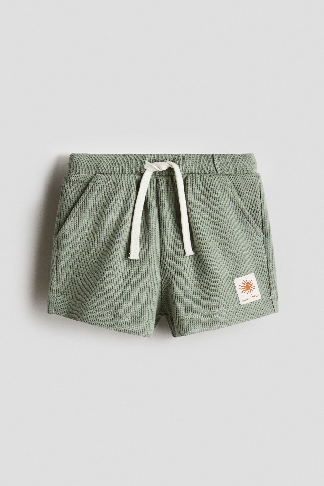 Шорты из вафельного хлопкового джерси с эластичной, утягивающей талией и диагональными карманами спереди.