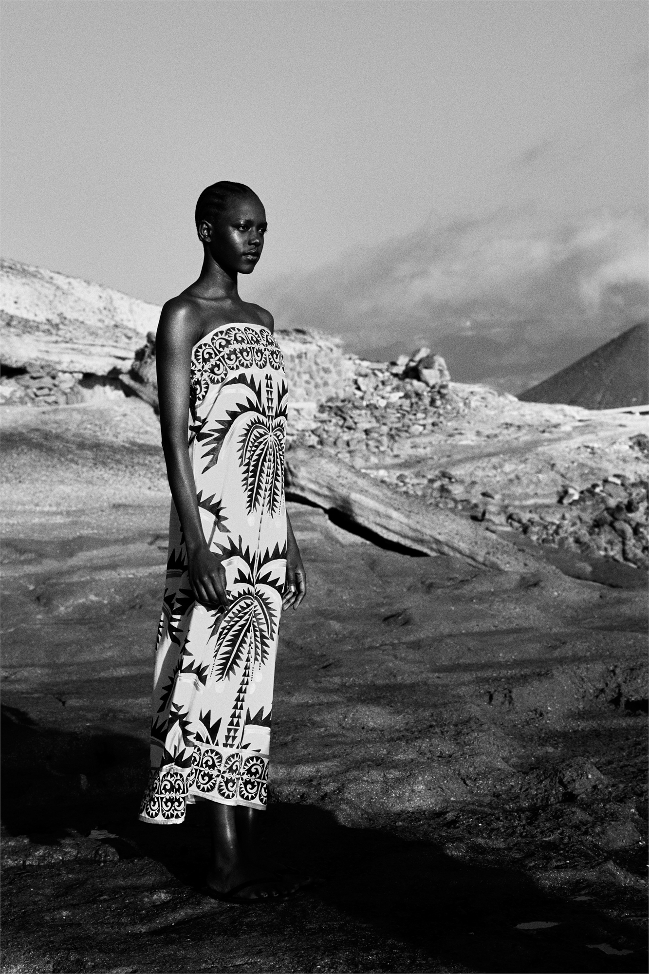 Приталенное платье-бандо длиной до колен из смеси вискозы и льна с воздушным плетением. Скрытая застежка-молния и застежка-крючок сзади, подол прямого кроя с высоким разрезом сзади. Корсет с косточками спереди для придания формы и поддержки, а также эластичная панель с застежками-крючками сзади. Хлопковая подкладка.