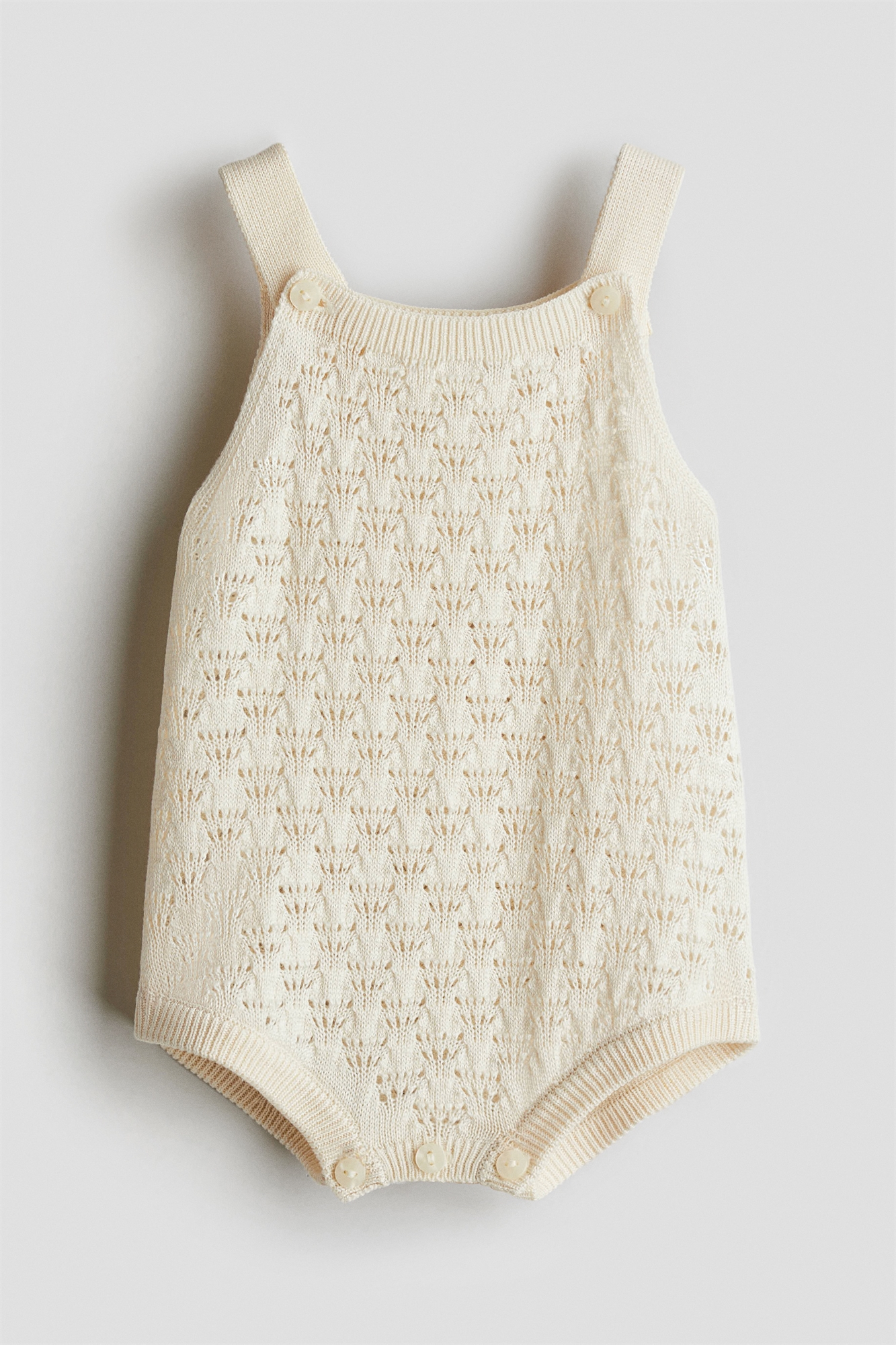 H&M Adorables. Ромпер без рукавов из мягкого трикотажа пуантель из смеси шелка и лиоцелла. Квадратный вырез с ребристой отделкой, регулируемые бретели на плечах с застежкой на пуговицы, кнопки внизу для удобства переодевания и ребристая отделка по ногам. Коллекция H&M Adorables - это подборка удобных и качественных вещей, не теряющих актуальности.